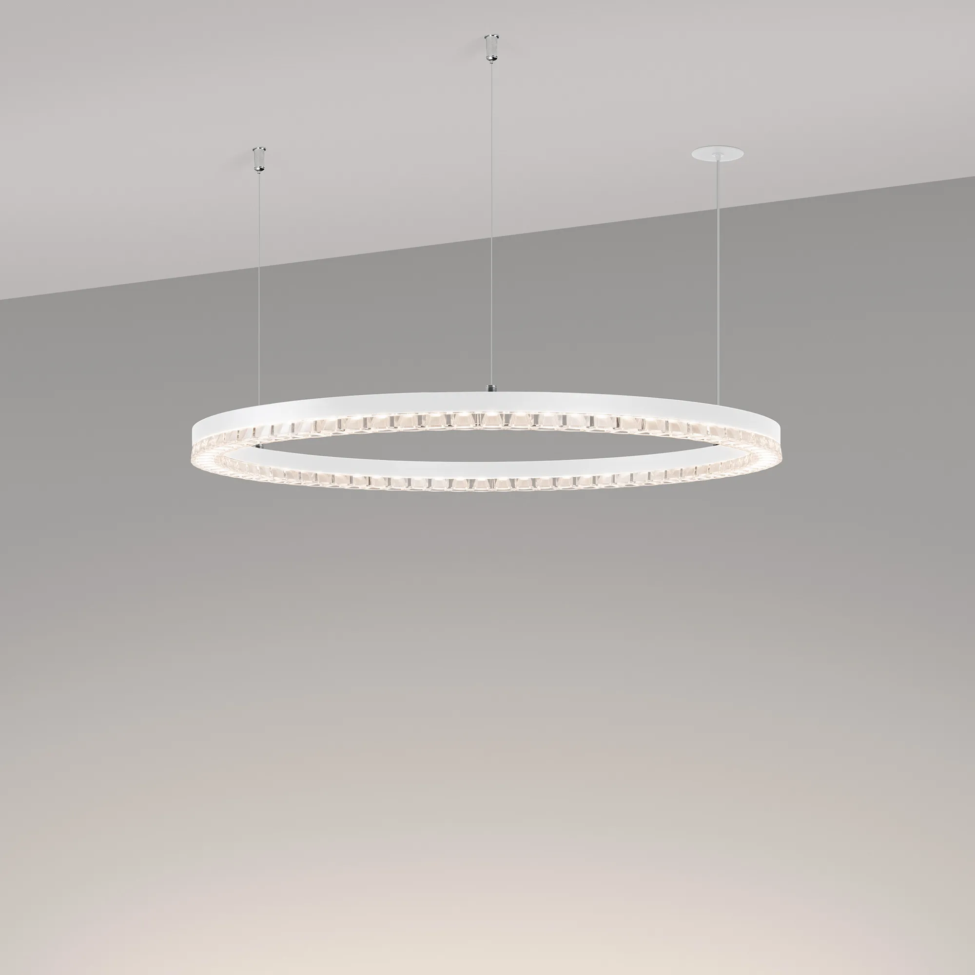 Подвесные светильники DIAMOND сочетают в себе одновременно функциональный и декоративный свет, зрительный комфорт и создание дизайнерских композиций! Cветильники DIAMOND - отличный выбор для освещения в торговых центрах, офисах, галереях, МОП жилых домов бизнес-класса и выше. Алюминиевый окрашенный корпус светильника выполнен в форме круга. Необычная форма рассеивателя с линзами, напоминающая ювелирное украшение, будет изысканно смотреться в разных интерьерах. Индекс CRI>90 отвечает за отличное восприятие и передачу цветовых оттенков. Средний угол излучения 45 градусов универсален для реализации различных задач в светотехнических проектах. Подключение осуществляется с помощью встроенного драйвера напрямую к сети переменного тока 230 В. Управление яркостью по протоколу TRIAC позволяет легко отрегулировать нужный уровень освещения. Низкая пульсация обеспечивает комфортное освещение без мерцания. Пылевлагозащита на уровне IP20 позволяет применять модель только внутри помещений.