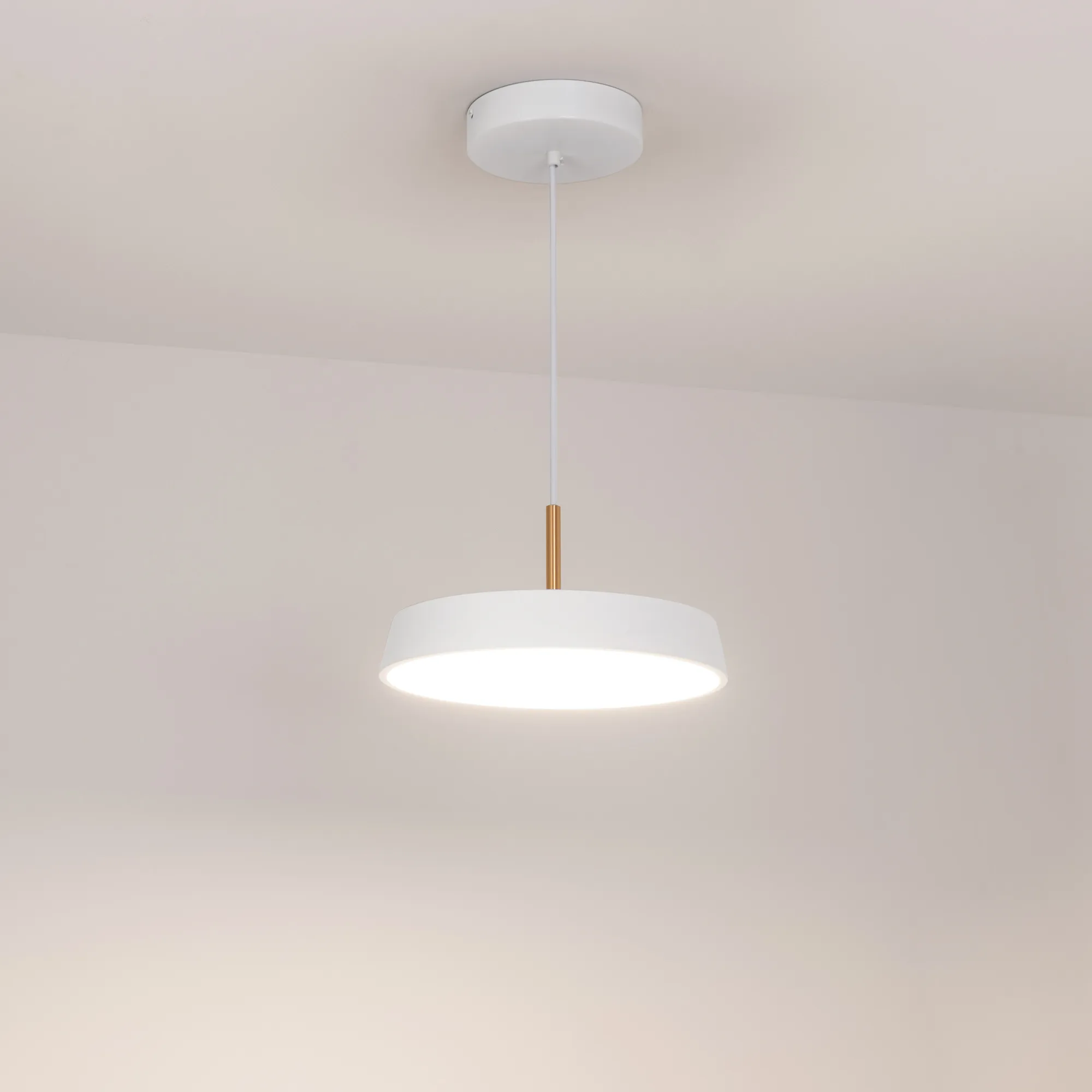 Подвесной светильник SP-ELEGANT-R300-17W Day4000 (WH, 120 deg, 230V) мощностью 17 Вт с дневным белым цветом свечения (4000 К) и индексом цветопередачи CRI>80 для освещения торговых, офисных, жилых и других помещений. Круглый корпус из стали на изящном подвесе длиной 1200 мм с золотистой декоративной вставкой будет уместно смотреться в любом интерьере. Световой поток 1258 лм и широкий угол излучения 120° для создания основного освещения. Коэффициент пульсации менее 1% гарантирует комфортное и приятное для глаз освещение без мерцания. Подвесной монтаж и удобная регулировка длины подвеса без специального инструмента. Компактный встроенный драйвер позволяет быстро и безопасно подключить светильник к сети переменного тока 230 В.