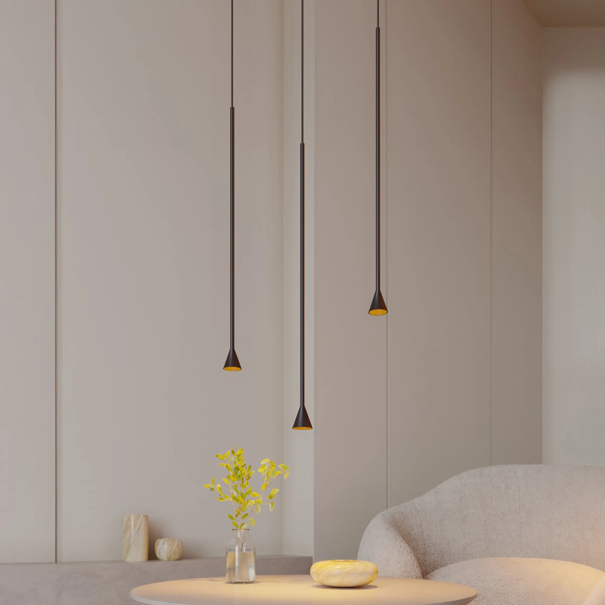 Подвесной светодиодный светильник RINAR-HANG мощностью 5 Вт, теплого цвета свечения 3000 K предназначен для направленного декоративного освещения в жилых или коммерческих помещениях. Светильник с узким углом излучения 36 градусов оригинально дополнит интерьеры кухни-гостиной или зала кафе, ресторанов. Максимальная длина регулируемого подвеса 1500 мм. Подключение осуществляется с помощью входящего в комплект драйвера напрямую к сети переменного тока 230 В. Индекс CRI>94 отвечает за отличное восприятие и передачу цветовых оттенков. Низкая пульсация обеспечивает комфортное освещение без мерцания. Алюминиевый корпус с конусообразным светоизлучаетем. Пылевлагозащита на уровне IP20 позволяет применять модель внутри помещений, где нет контакта с водой или другими жидкостями.