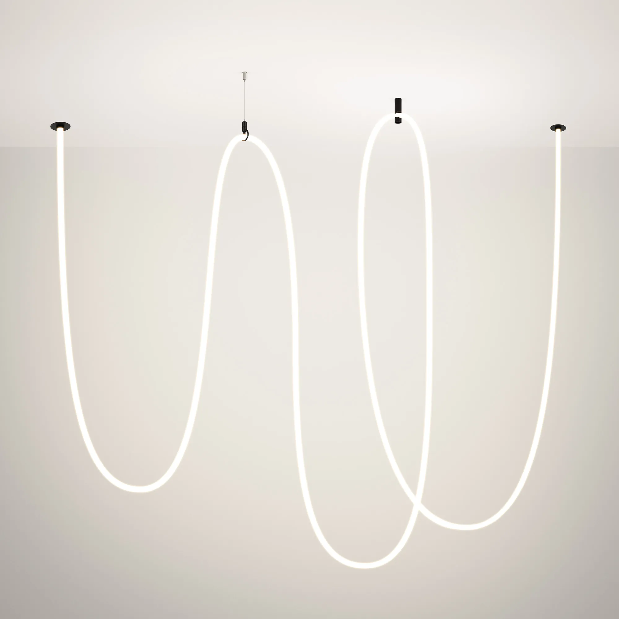 Подвесной встраиваемый светодиодный светильник TROPIC мощностью 110 Вт с уникальным корпусом из гибкого неона диаметром 18 мм. Высокий индекс цветопередачи CRI>90 и сверх широкий угол излучения 360 градусов обеспечивают качественное и оригинальное освещение с точной передачей цветовых оттенков. Силиконовый материал неона обеспечивает мягкое, равномерное освещение. Использование подвесов и креплений (приобретаются отдельно) позволяют воплотить разные идеи декоративного оформления. Корпус с защитой от пыли IP20 подходит для установки внутри помещений, где нет контакта с водой или другими жидкостями. Комбинируя светильники и располагая их на разном уровне, можно создавать оригинальные световые композиции. Встроенный блок питания позволяет быстро подключать светильник напрямую к сети 230 В. Низкая пульсация обеспечивает комфортное освещение без мерцания. Предназначен для основного и декоративного освещения в жилых, коммерческих, торговых помещениях, ресторанах или кафе.