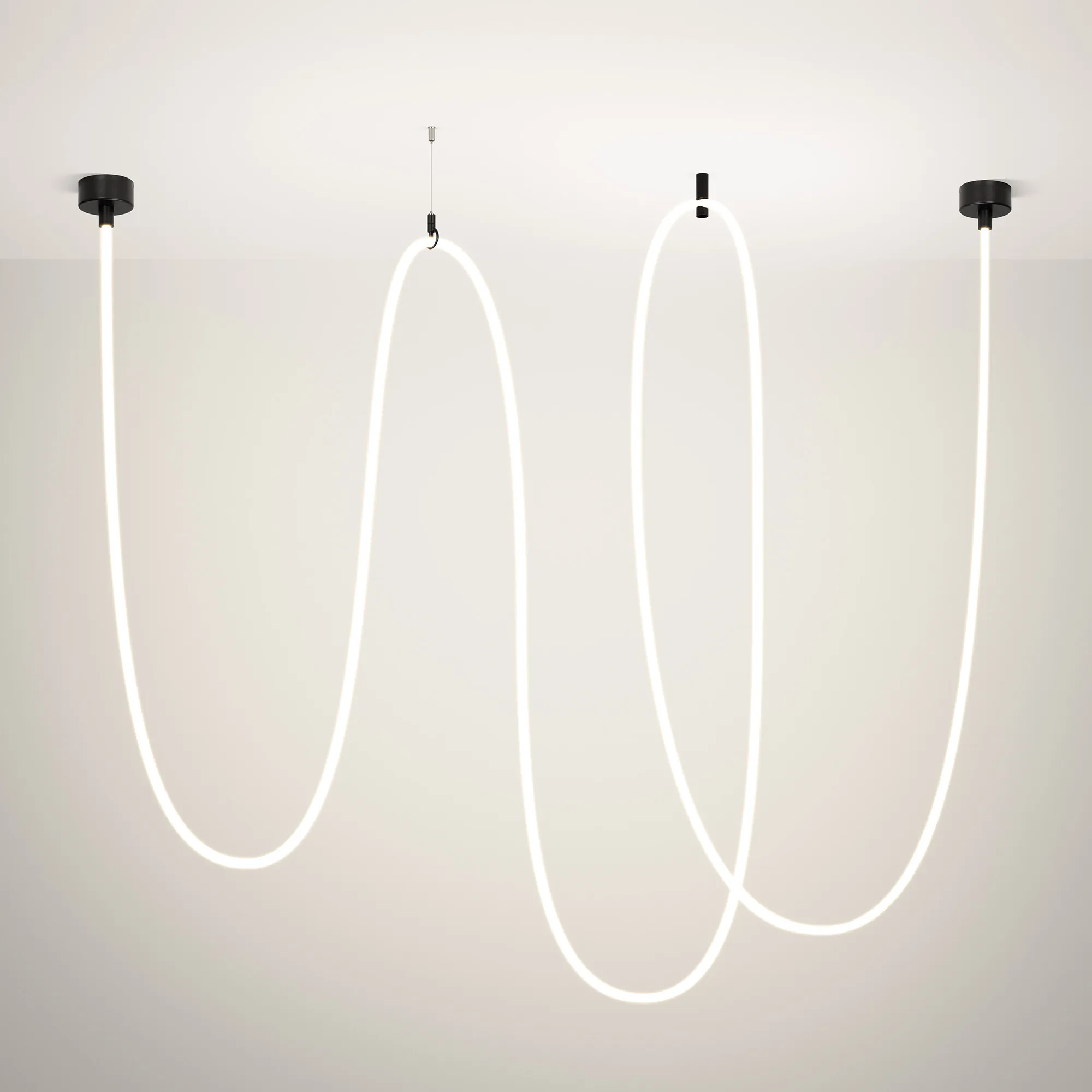 Подвесной накладной светодиодный светильник TROPIC мощностью 110 Вт с уникальным корпусом из гибкого неона диаметром 18 мм. Высокий индекс цветопередачи CRI>90 и сверх широкий угол излучения 360 градусов обеспечивают качественное и оригинальное освещение с точной передачей цветовых оттенков. Силиконовый материал неона обеспечивает мягкое, равномерное освещение. Использование подвесов и креплений (приобретаются отдельно) позволяют воплотить разные идеи декоративного оформления. Корпус с защитой от пыли IP20 подходит для установки внутри помещений, где нет контакта с водой или другими жидкостями. Комбинируя светильники и располагая их на разном уровне, можно создавать оригинальные световые композиции. Встроенный блок питания позволяет быстро подключать светильник напрямую к сети 230 В. Низкая пульсация обеспечивает комфортное освещение без мерцания. Предназначен для основного и декоративного освещения в жилых, коммерческих, торговых помещениях, ресторанах или кафе.