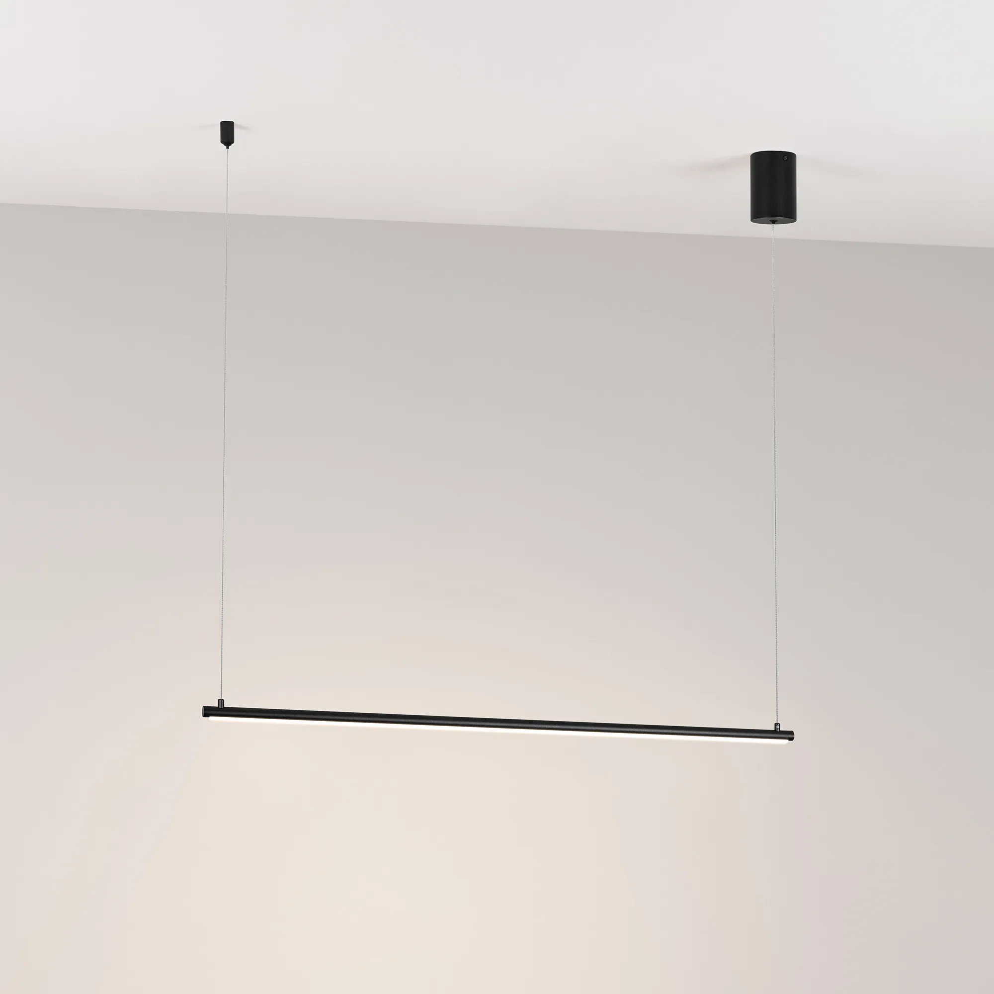 Декоративный подвесной светильник мощностью 15 Вт с дневным белым цветом свечения (4000 К). Сбалансированный минималистичный дизайн и высокая световая эффективность. Горизонтальное свечение вниз. Черный изящный корпус из металла длиной 910 мм на регулируемом тросе стильно смотрится в жилых и офисных помещениях. Регулируемая длина подвеса позволяет размещать светильники на разной высоте и подстраивать их под высоту потолков. Световой поток 675 лм и высокий индекс цветопередачи (CRI>90) для качественного освещения. Драйвер в комплекте для подключения к сети 230 В.