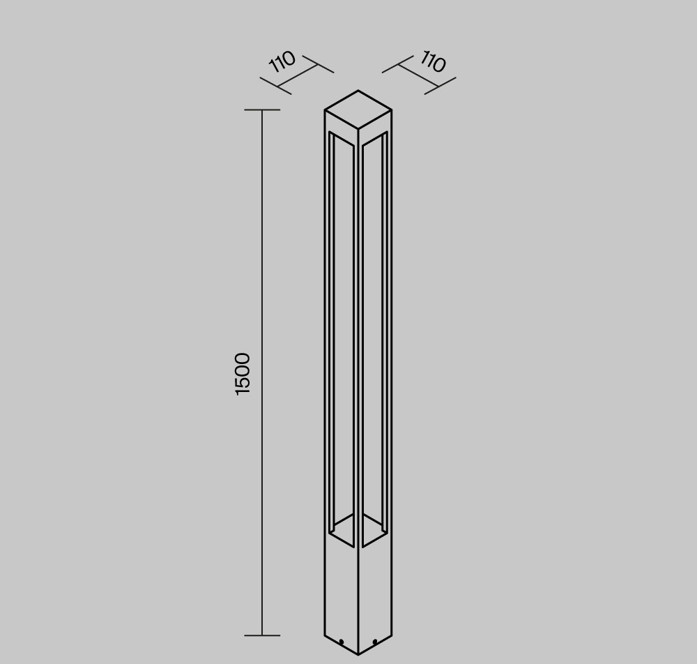 Светодиодный столбик для паркового освещения поставляется с установленными источниками света. Корпус изготовлен из алюминия и покрыт черной матовой краской.