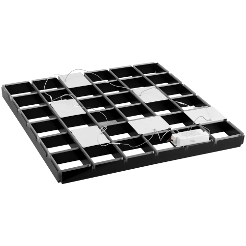 Светильники типа домино. Предназначены для монтирования в потолки Грильято с ячейками 100х100 и 50х50. Расстояние между кубиками - 38 см
