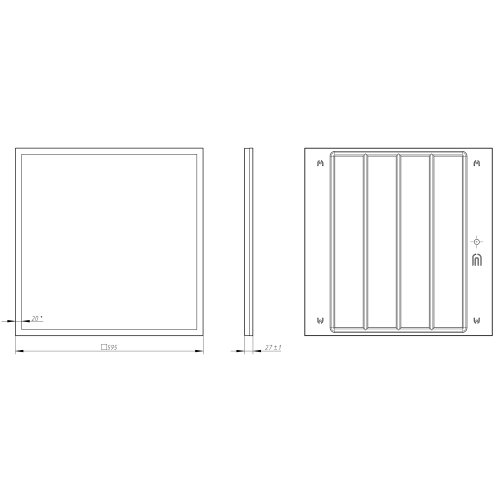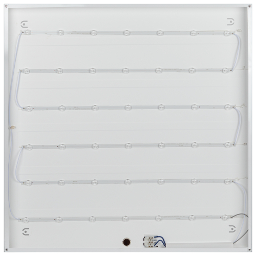 Светодиодная панель мощностью . Светит, как ультратонкая панель приятным равномерным светом, и не уступает по яркости, при этом имеет значительно более низкую цену. Драйвер встроен в корпус светильник полностью готов к установке и легко монтируется на потолок любого типа как в качестве встраиваемого светильника, так и накладным или подвесным способом. Легко устанавливается в потолки Армстронг, на гипсокартонные, бетонные потолки. Позволяет в разы ускорить, а значит и удешевить монтаж. Цветовая температура: 4000 К , повышающий работоспособность и концентрацию внимания. Светильник создаёт качественный ровный свет: индекс цветопередачи Ra - выше 80, что обеспечивает отличную цветопередачу; коэффициент пульсаций - ниже 5% - соответствует самым жестким требованиям СанПин. Такое освещение рекомендовано для учебных, дошкольных, медицинских учреждений. Является идеальным решением для офисных и общественных пространств. Габаритная яркость: 3550 кд/м2. Класс светораспределения: П. Класс по ограничению яркости: 1.