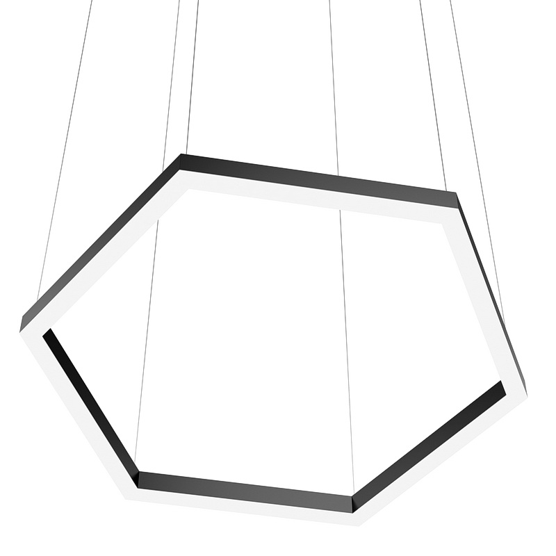 Корпус светильника шестиугольной формы может быть выполнен в черном, белом и сером цветах. Цветовая температура на выбор: теплый цвет (3000К), нейтральный (4000К) или холодный (6500К). Материал корпуса металл, размеры на выбор заказчика. Тип крепления: подвесной или накладной монтаж.