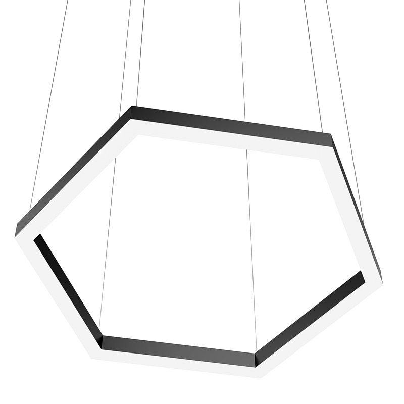 Корпус светильника шестиугольной формы может быть выполнен в черном, белом и сером цветах. Цветовая температура на выбор: теплый цвет (3000К), нейтральный (4000К) или холодный (6500К). Материал корпуса металл, размеры на выбор заказчика. Тип крепления: подвесной или накладной монтаж.