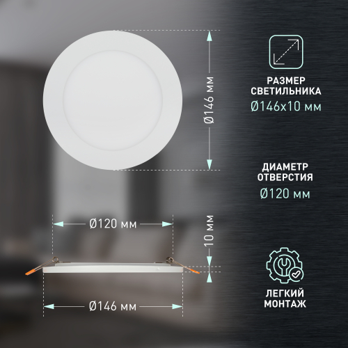 Круглый светодиодный светильник LED 1-9-4K - эффектное решение для любой комнаты в вашем доме! Светодиодный светильник можно использовать как в качестве основного освещения, так и для создания акцентов в определенных зонах комнаты. Благодаря скрытой части корпуса светильники можно встраивать в потолок или стены, создавая разный стиль помещений. Светильник ЭРА с приятным дизайном подойдет для помещений с разным интерьером: от лофта до модерна, классицизма или минимализма. Цветовая температура составляет 4000К, она оптимальна для глаз и не заставляет их испытывать дискомфорт. Максимальная мощность лампы – 9 Вт. Корпус встраиваемого светильника изготовлен из ударопрочного алюминия, что делает его особенно удобным в использовании, а благодаря матовому стеклу, защищающему лампу, свет рассеивается и становится мягким. Диаметр отверстия, требуемого для установки светильника составляет 120 мм, а диаметр самого светильника – 146 мм. Купив точечный светильник бренда ЭРА, вы останетесь довольны и сможете создать приятную атмосферу в доме!