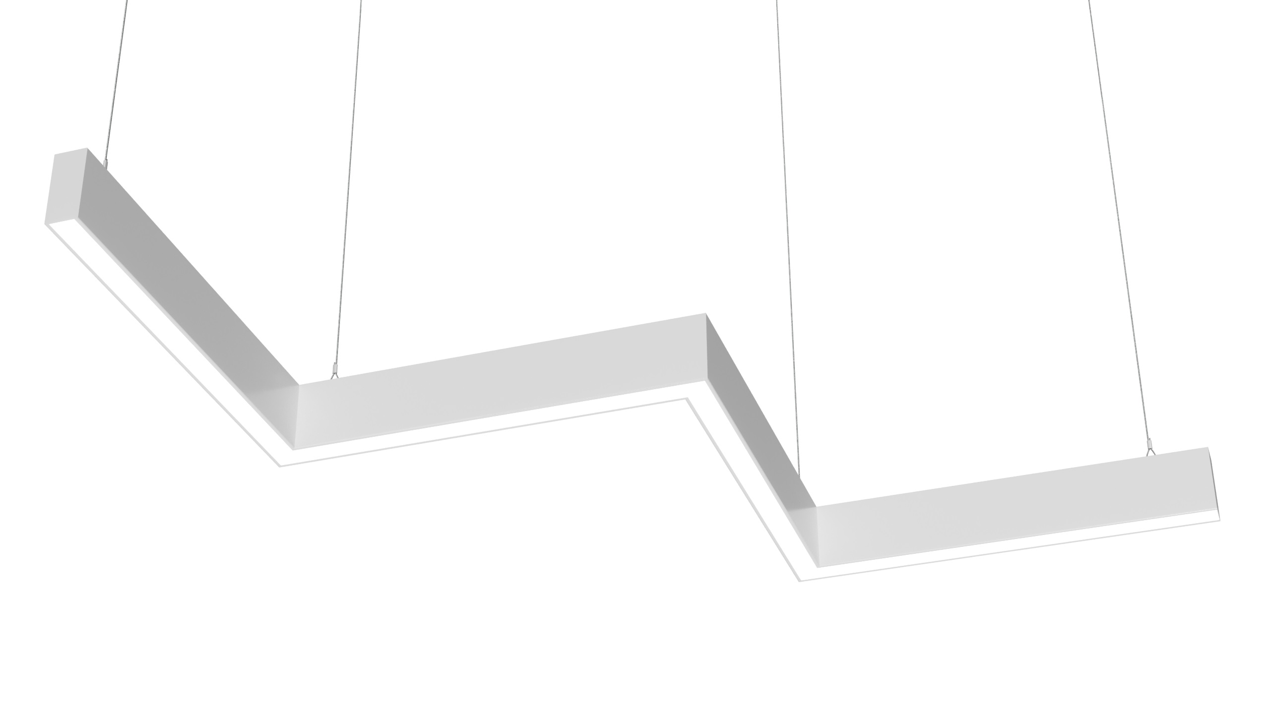Подвесной профильный светильник зигзаг, используется в качестве основного или интерьерного освещения в офисах, торговых залах, административных помещениях, выставочных залах и арт-пространствах. Может использоваться для дизайнерского освещения любых видов общественных помещений.