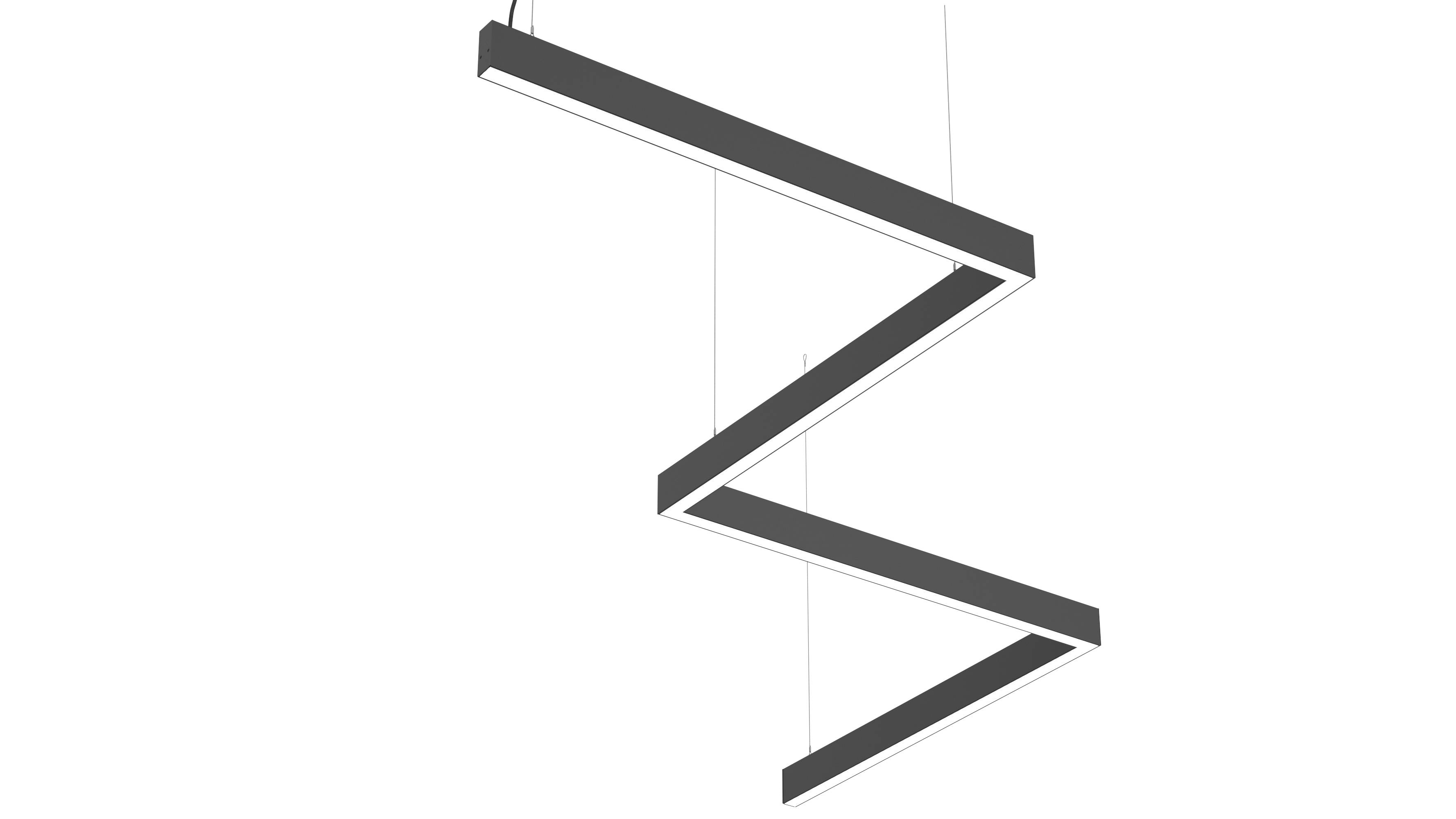 Подвесной профильный светильник зигзаг, используется в качестве основного или интерьерного освещения в офисах, торговых залах, административных помещениях, выставочных залах и арт-пространствах. Может использоваться для дизайнерского освещения любых видов общественных помещений.