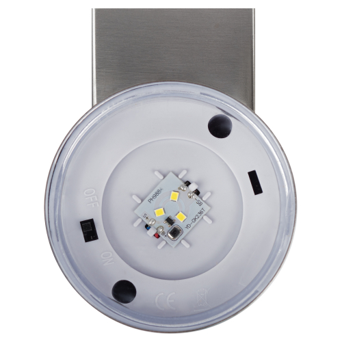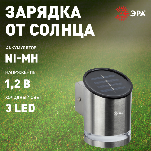 Новинка! Цилиндрический фасадный светильник ЭРА ERAFS012-03 «Статус» (арт. Б0057594) из хромированного металла с прозрачным ободком, эффектно пропускающим свет. Основной световой поток, формируемый 3 современными яркими светодиодами, направлен вниз. Нейтральный белый цвет свечения. Беспроводная фасадная подсветка на солнечной батарее быстро и легко монтируется, крепёж в комплекте. Солнечная панель расположена в верхней части корпуса и накапливает энергию в течение всего светового дня. Дополнительная подсветка вашего фасада автоматически включится с наступлением сумерек и проработает 8 часов до следующей подзарядки. Размеры светильника: 12х9,5х13 см. Отличным решением станет разместить на фасаде здания, на балконе, на гараже сразу несколько таких фасадных светильников.