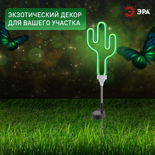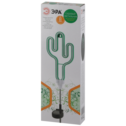 Беспроводной LED светильник ERASF012-31 "Кактус" станет забавным украшением Вашей дачной территории. Небольшие размеры позволят Вам разместить светильник около клумбы, украсить пространство рядом с прудиком или бассейном, изящно подсветить аллею или придомовую территорию. Фигурка из пластика высотой 41 см с легкостью вставляется в землю. Кроме того, есть возможность подвесить устройство на крючок. Садовый светильник функционирует на солнечной батарее. Такой вид получения энергии является самым экологичным, энергоемким, а также бесшумным. Питание происходит во включенном режиме, в светлое время суток. С наступлением темноты силуэт кактуса светится ярким зеленым светом. Необычный дизайн корпуса придает подсветке неповторимый стиль и создает праздничное настроение. Модель прекрасно подойдет в качестве декора к загородным вечеринкам. Обращаем Ваше внимание, что перед использованием фигурки её необходимо включить и зарядить. Светильник заряжается в течение всего светового дня. Работа от солнечной батареи рассчитана 8 часов непрерывной работы. Высокая степень защиты от пыли и влаги позволяет оставлять светильник на улице в неприятные погодные условия. Устройте экзотическую вечеринку вместе с неоновым светильником ERASF012-31 от компании ЭРА!