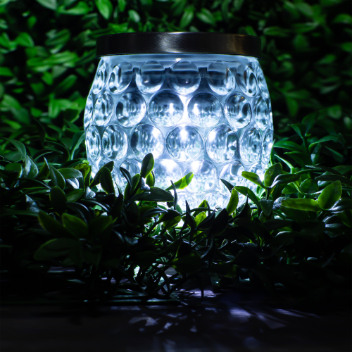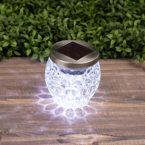 Садовый светильник Хрустальный шар имеет белое свечение, и прекрасно подойдет для освещения террасы, беседок, дорожек и клумб. Диаметр 10 см. Белое свечение светодиодов.