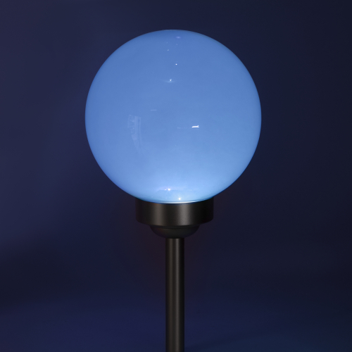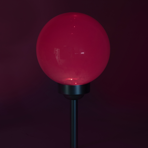 Садовый светильник традиционной формы шара, при этом с современным RGB-свечением - ЭРА ERASF22-55 "Шар" (арт. Б0057656). Сфера диаметром 20 см переливается различными световыми оттенками. Высота уличного светильника, защищённого от влаги и пыли - 62 см. Он быстро и легко втыкается в грунт. Ножка и основание под плафон окрашены стойким способом в трендовый цвет хром. Этот садовый RGB-светильник выглядит по-настоящему современно. Тренд на RGB-освещение уверенно перебрался на загородные участки! Рекомендуем купить новый RGB-светильник на солнечной батарее для оформления садовых дорожек, террас, газонов, клумб, альпийских горок. В любой части приусадебной территории такие яркие разноцветные светильники садовые создадут праздничное настроение.