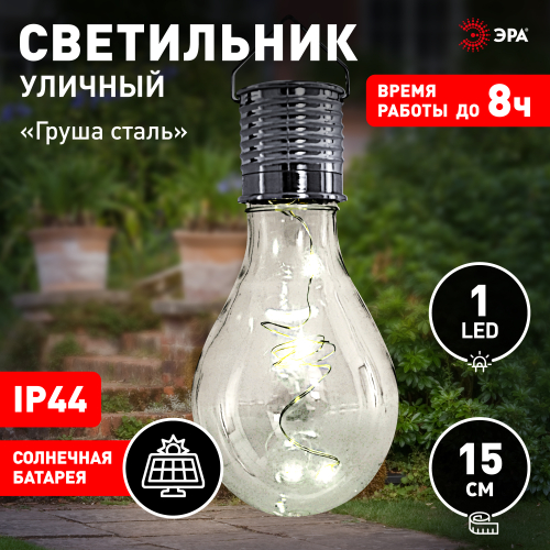 Светильник уличный ЭРА ERASF23-27 Груша сталь на солнечной батарее 7,5x7,5x15 см 1 LED