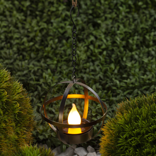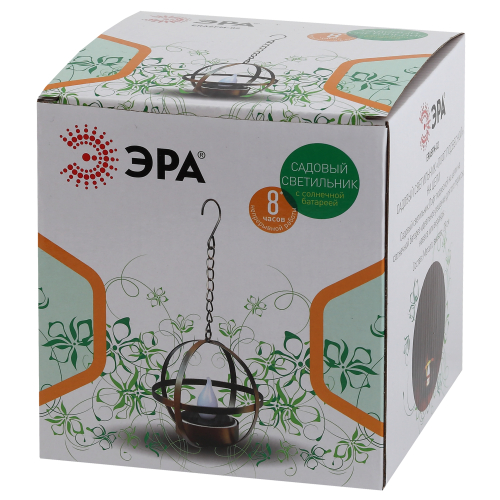 Подвесной садовый светильник ERASFM-02 "Лофт" придаст Вашей дачной территории немного таинственности. Небольшие внешние габариты позволят Вам разместить светильник на фасаде или карнизе дома, слегка подсветить тропинку, ворота или террасу. Металлический светильник имеет большой крючок для подвешивания. LED светильник функционирует на солнечной батарее. Такой способ получения энергии является самым экологичным, энергоемким, а также бесшумным. Питание происходит во включенном режиме, днем. Самое интересное начинается после захода солнца: декоративная свеча начинает светиться теплым желты светом, создавая эффект пламени. Обстановка на участке приобретет немного таинственный характер за счет необычного решетчатого корпуса. Солнечная батарея предусматривает 8 часов непрерывной работы. Высокая степень защиты от пыли и влаги позволяет оставлять светильник на улице даже во время дождя. Обращаем Ваше внимание, что перед использованием фигурки её необходимо включить и зарядить. Светильник заряжается в течение всего светового дня. Подвесной светильник для сада от компании ЭРА чудесный вариант для стилизации Вашей территории.