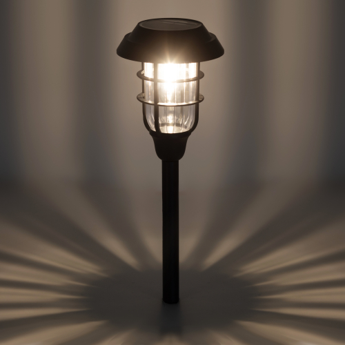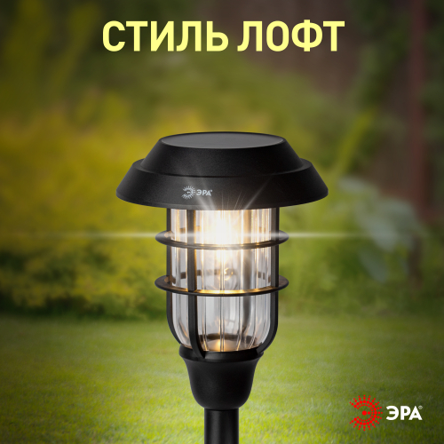 Садовый светильник ЭРА ERASS12-03 (арт. Б0057652) в стиле лофт. За решётчатым плафоном спрятана яркая светодиодная лампочка, создающая эффектную садовую подсветку. Благодаря встроенной солнечной батарее данный светильник беспроводной садовый заряжается от дневного света, а в тёмное время суток работает от накопленной энергии. Светильники в сад на высоких ножках удачны для оформления дорожек, террас, входных групп. Садовые лофт-светильники красиво смотрятся на зелёном газоне, вблизи кустарников и деревьев. Корпус изготовлен из высокопрочного пластика. Солнечная панель находится на крышке лофт-светильника для максимального контакта с солнечными лучами. Садовый светильник на солнечной батарее заряжается даже в пасмурную погоду. Защищён от осадков.