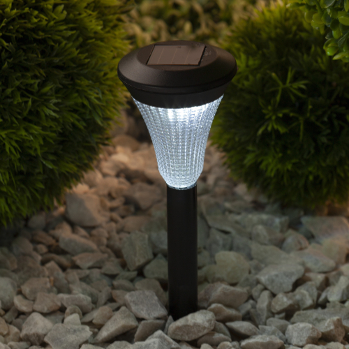 Классическая пластиковая модель садового светильника. Рифленое стекло плафона обеспечивает оригинальное свечение и красивые блики на освещаемой поверхности. Соотношение привлекательного дизайна и скромной цены обеспечивает стабильный спрос от сезона к сезону.