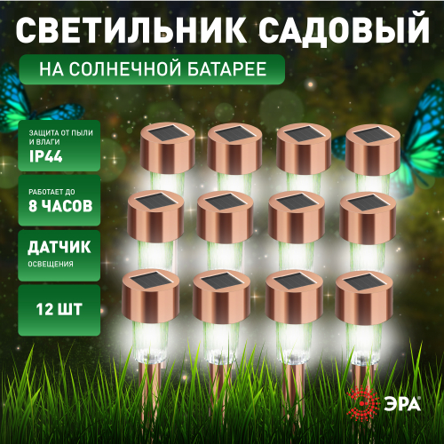 Светильник уличный ЭРА SL-SS30-CPR-M на солнечной батарее, нержавеющая сталь, медный, 32 см (комплект 12 шт. под МП)