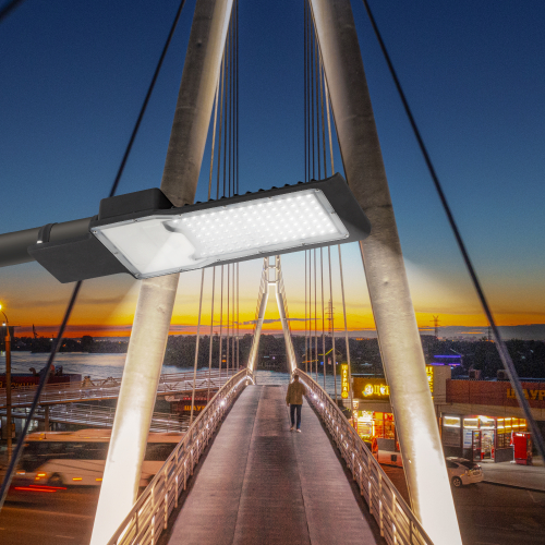 Консольные LED-светильники ЭРА SPP-502 / 503 в прямоугольном корпусе из литого анодированного алюминия с порошковой окраской. Устойчивы к механическим воздействиям, прошли испытания на устойчивость к ветровой нагрузке. Надёжно защищены от влаги и пыли - IP65. Широкая плата со встроенными светодиодами. Линза обеспечивает широкую кривую силы света (КСС "Ш"). Световой поток в 160 градусов распределяется вдоль полотна дороги, что делает светильники ЭРА SPP-502/503 идеальным решением для любого дорожного освещения. ЭРА SPP-502/503 обеспечивают свет высокого качества с индексом цветопередачи Ra>70, коэффициентом мощности PF>0.95 и световым потоком до 13500 Лм. Цветовая температура - 5000К – нейтральный белый свет, приближенный к естественному дневному. Мощность - от 30 до 200 Вт.