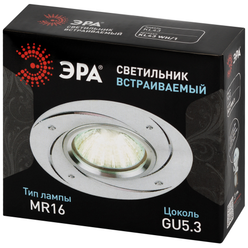 Светильник встраиваемый KL43 WH/1 - отличный выбор для любого помещения в вашей квартире! Точечные светильники подходят как для главного освещения, так и для создания акцентов в определенных зонах комнаты. Благодаря скрытой части корпуса светильники можно встраивать не только в потолок, но и в стены, создавая разный стиль помещений. Светильник ЭРА с приятным дизайном подойдет для комнат с разным интерьером: от лофта до модерна, классицизма или минимализма. При помощи точечных светильников можно освещать только те участки помещения, которыми вы пользуетесь в данный момент, не затрачивая лишнюю элеткроэнергию. Максимальная мощность лампы составляет 50 Вт. Корпус встраиваемого светильника изготовлен из металла, что делает его особенно удобным и надежным в использовании. Диаметр отверстия, требуемого для установки светильника составляет 60 миллиметров, а диаметр самого светильника – 95 миллиметров. Цоколь под лампу GU5.3 входит в комплект. Купив точечный светильник бренда ЭРА, вы останетесь довольны и сможете создать приятную атмосферу и уют в Вашем доме! Внимание: лампа не входит в комплектацию.