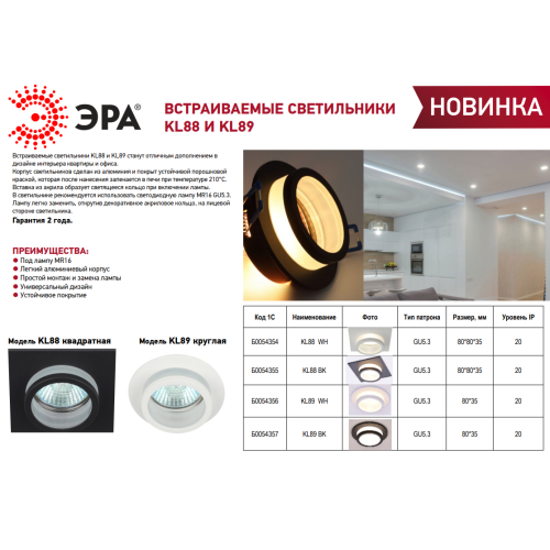 Для основного и акцентного освещения жилых и офисных помещений