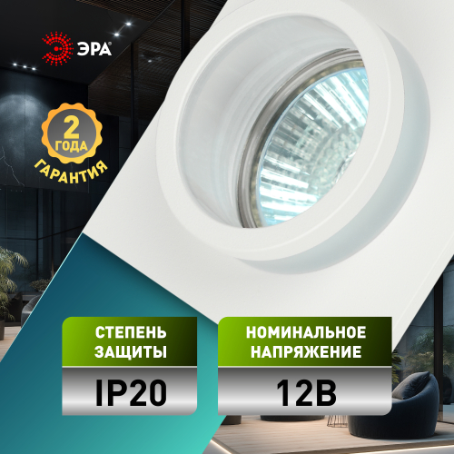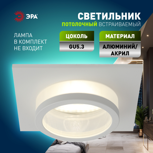 Светильник встраиваемый KL88 WH MR16/GU5.3 - превосходный выбор для вашего дома! Точечные светильники можно использовать как в качестве главного освещения, так и для создания акцентов в определенных зонах комнаты. Благодаря скрытой части корпуса светильники можно встраивать не только в потолок, но и в стены, создавая разный стиль помещений. Светильник ЭРА с приятным дизайном подойдет для комнат с разным интерьером: от лофта до модерна, классицизма или минимализма. При помощи точечных светильников можно освещать только те участки помещения, которыми вы пользуетесь в данный момент, не затрачивая лишнюю элеткроэнергию. Максимальная мощность лампы составляет 12 Вт. Корпус встраиваемого светильника изготовлен из алюминия, что делает его особенно удобным и надежным в использовании. Диаметр отверстия, требуемого для установки светильника составляет 70 миллиметров, а размер корпуса светильника – 80x80 миллиметров. Цоколь под лампу GU5.3 входит в комплект. Купив точечный светильник бренда ЭРА, вы останетесь довольны и сможете создать приятную атмосферу и уют в Вашем доме! Внимание: лампа не входит в комплектацию.