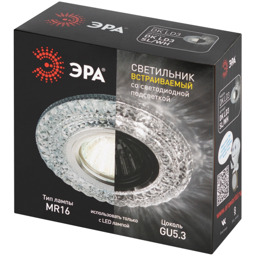 Точечный светильник DK LD3 SL/WH со светодиодной подсветкой станет прекрасным решением для любого помещения: его можно разместить в спальне, в детской или на кухне. Светильник с подсветкой можно использовать как в качестве основного освещения, так и для создания акцентов в определенных зонах помещения. Благодаря скрытой части корпуса светильники можно встраивать в потолок или стены, создавая разный дизайн помещений. Точечный светильник ЭРА с ярким дизайном подойдет для помещений с разным интерьером: от лофта до модерна, классицизма или минимализма. Прозрачный корпус светодиодной подсветки выполнен из полимера, а цветовая температура составляет 4000К. Такая температура оптимальна для глаз и не заставляет их испытывать дискомфорт. Максимальная мощность лампы – 50 Вт. Корпус встраиваемого светильника изготовлен из ударопрочного и стойкого к коррозии материала - алюминия, что делает его особенно удобным в эксплуатации. Диаметр отверстия, требуемого для установки светильника составляет 65 мм, а диаметр самого светильника – 100 мм. Цоколь под лампу GU5.3 в комплекте. Купив точечный светильник бренда ЭРА, вы останетесь довольны и сможете создать приятную атмосферу в доме! Внимание: лампа не входит в комплектацию.
