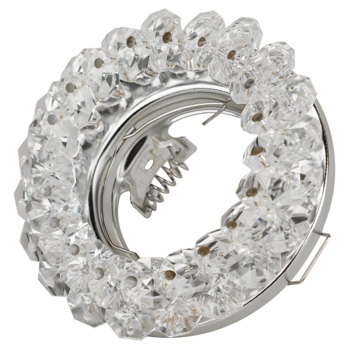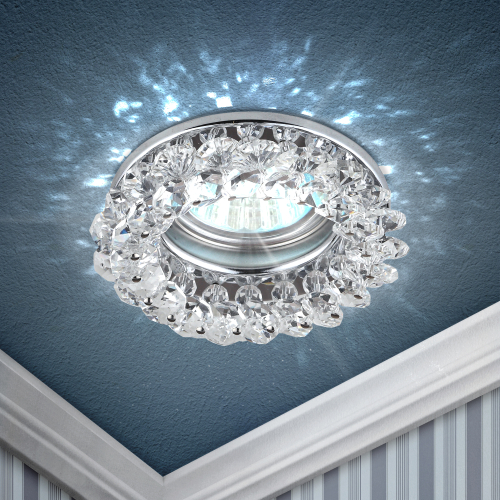 Встраиваемый светильник DK16 CH/WH круглый с мелкими хрусталиками станет эффектным решением для любого помещения: его можно разместить в спальне, в детской или на кухне. Светильник подходят как для базового освещения, так и для создания акцентов в определенных зонах комнаты. Благодаря скрытой части корпуса светильники можно встраивать в потолок или стены, создавая разный дизайн помещений. Встраиваемый светильник ЭРА с приятным дизайном подойдет для комнат с разным интерьером: от лофта до модерна, классицизма или минимализма. При помощи точечных светильников можно освещать только те участки помещения, которыми вы пользуетесь в данный момент, не затрачивая лишнюю элеткроэнергию. Максимальная мощность лампы составляет 50 Вт. Корпус встраиваемого светильника изготовлен из нержавеющей стали. Диаметр отверстия, требуемого для установки светильника составляет 65 миллиметров, а диаметр самого светильника – 90 миллиметров. Цоколь под лампу GU5.3 входит в комплект. Купив встраиваемый светильник бренда ЭРА, вы останетесь довольны и сможете создать уют в Вашем доме! Внимание: лампа не входит в комплектацию.