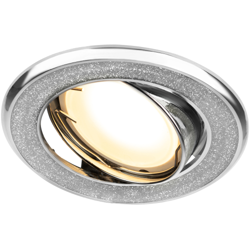 Поворотный светильник ЭРА "круглый со стеклянной крошкой" DK18 CH/SH SL - идеальное решение для вашей комнаты! Светодиодный светильник можно использовать как в качестве главного освещения, так и для создания акцентов в определенных зонах комнаты. Благодаря скрытой части корпуса светильники можно встраивать в потолок или стены, создавая разный функционал помещений. Светильник ЭРА с ярким дизайном подойдет для помещений с разным интерьером: от минимализма до хай-тека, прованса или скандинавского стиля. Благодаря поворотному механизму у Вас появится уникальная возможность направлять свет в разные точки: например, на кухне осветить рабочую зону, а в кабинете место для чтения. Максимальная мощность лампы – 50 Вт. Корпус встраиваемого светильника изготовлен из алюминия, что делает его особенно удобным в использовании. Диаметр отверстия, требуемого для установки светильника составляет 75 мм, а диаметр самого светильника – 85 мм. Цоколь под лампу GU5.3 в комплекте. Купив точечный светильник бренда ЭРА, вы останетесь довольны и сможете создать уют в доме!
