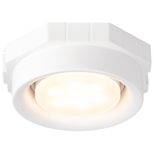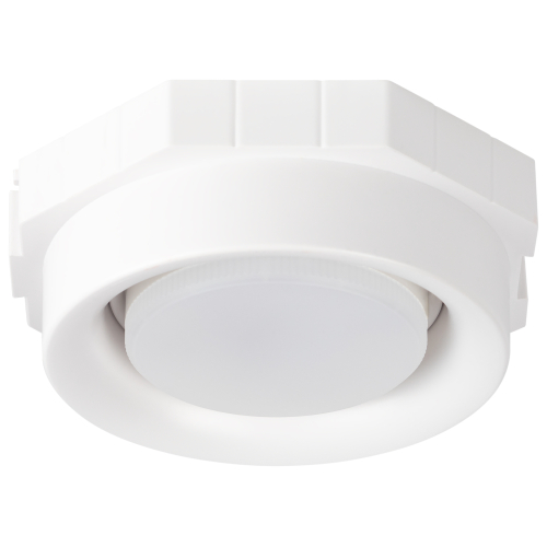 Светильник предназначен для встраиваемого монтажа в потолок, обеспечивая аккуратный внешний вид. Рассчитан на установку одной сменной светодиодной лампы с цоколем GX53 мощностью до 15 Вт, что позволяет подобрать оптимальный уровень освещения под конкретные задачи. Питание осуществляется от сети 220–230 В, при этом дополнительный драйвер не требуется.