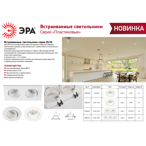 Точечный светильник KL90-3 WH MR16/GU5.3 - отличный выбор для любого помещения в вашей квартире! Встраиваемые светильники подходят как для базового освещения, так и для создания акцентов в определенных зонах комнаты. Благодаря скрытой части корпуса светильники можно встраивать не только в потолок, но и в стены, создавая разный стиль помещений. Светильник ЭРА с приятным дизайном подойдет для комнат с разным интерьером: от лофта до модерна, классицизма или минимализма. При помощи точечных светильников можно освещать только те участки помещения, которыми вы пользуетесь в данный момент, не затрачивая лишнюю электроэнергию. Максимальная мощность лампы составляет 11 Вт. Корпус встраиваемого светильника изготовлен из термостойкого пластика, что делает его особенно удобным и надежным в использовании. Диаметр отверстия, требуемого для установки светильника составляет 80x240 миллиметров, а размер корпуса светильника – 252x93x29 миллиметров. Цоколь под лампу GU5.3 входит в комплект. Купив точечный светильник бренда ЭРА, вы останетесь довольны и сможете создать приятную атмосферу и уют в Вашем доме! Внимание: лампа не входит в комплектацию.