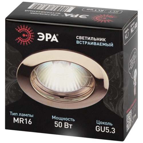 Встраиваемый светильник KL1 GD станет превосходным решением для любого помещения: его можно разместить в спальне, в детской или на кухне. Светильник можно использовать как в качестве основного освещения, так и для создания акцентов в определенных зонах комнаты. Благодаря скрытой части корпуса светильники можно встраивать в потолок или стены, создавая разный дизайн помещений. Встраиваемый светильник ЭРА с приятным дизайном подойдет для помещений с разным интерьером: от минимализма до хай-тека, прованса или скандинавского стиля. При помощи точечных светильников можно освещать только те участки помещения, которыми вы пользуетесь в данный момент, не затрачивая лишнюю элеткроэнергию. Максимальная мощность лампы – 50 Вт. Корпус встраиваемого светильника изготовлен из алюминия. Диаметр отверстия, требуемого для установки светильника составляет 60 мм, а диаметр самого светильника – 75 мм. Цоколь под лампу GU5.3 в комплекте. Купив встраиваемый светильник бренда ЭРА, вы останетесь довольны и сможете создать уют в доме! Внимание: лампа не входит в комплектацию.