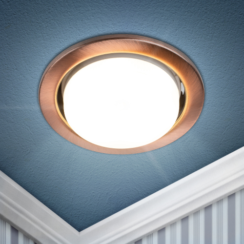 Степень защиты IP20 допускает установку только в сухих помещениях. Акцентный медный цвет подходит для интерьеров разных стилей – минимализм, хай-тек, модерн.