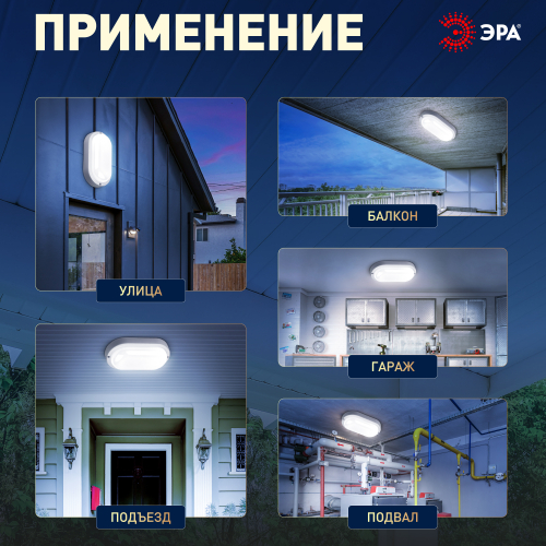 Для освещения общественных зон с повышенной влажностью – лестничные клетки, балконы, подвалы, технические и подсобные помещения, подземные переходы. А также для бытового использования – над крыльцом, на балконе, в подвале, в хозблоке, в гараже.