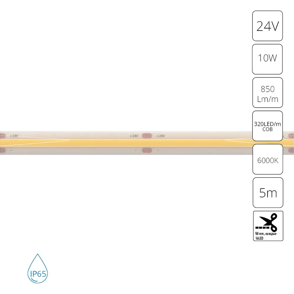 Светодиодная лента A2432008-06-6K серии AQUA LANE. Длина 5 m. Светодиодная лента состоит из силикона, гибкой медной печатной платы со светодиодами COB и клейкого слоя 3М, который обеспечивает удобство монтажа. Лента предназначена для освещения помещений с повыщенной влажностью, рассчитана для работы с источником постоянного напряжения 24В. Параметры пылевлагозащиты IP65. Страна происхождения бренда — ИТАЛИЯ.