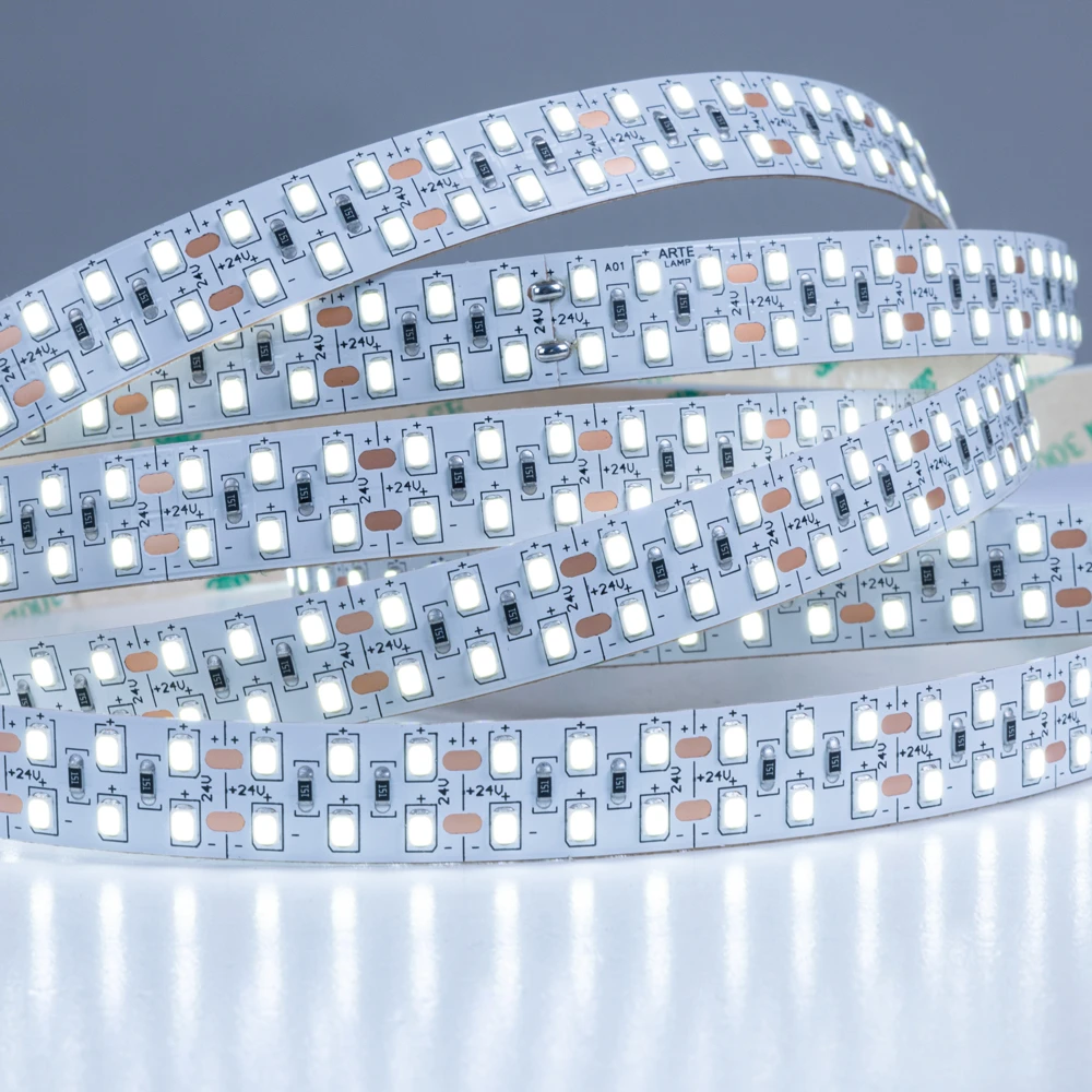 Светодиодная лента A2424015-03-6K серии TAPE. Длина 5 m. Светодиодная лента состоит из гибкой медной печатной платы со светодиодами и клейкого слоя 3М, который обеспечивает удобство монтажа. Лента предназначена для декоративной подсветки и основного освещения внутри помещений, рассчитана для работы с источником постоянного напряжения 24В. Параметры пылевлагозащиты IP20. Страна происхождения бренда — ИТАЛИЯ.
