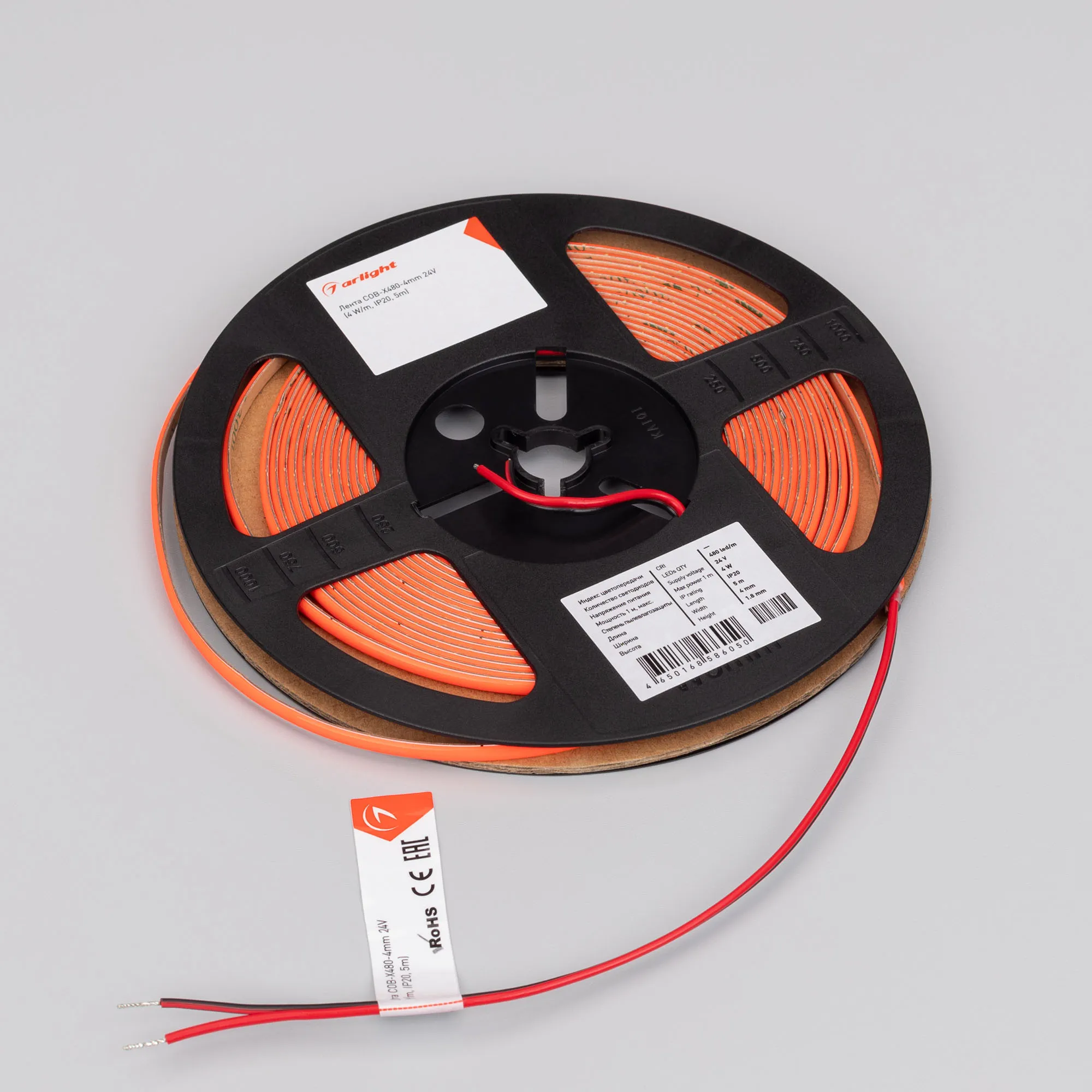 Узкая светодиодная лента сплошного свечения COB серии X480 шириной 4 мм, мощностью 4 Вт/м. Напряжение питания 24 В. Светодиоды CSP, 480 шт/м, красного цвета свечения. Минимальный отрезок 50 мм. Эффект сплошной линии света создается без применения рассеивающих экранов. Узкая плата позволяет установить ленту в тонкий паз, применяется для подсветки витрин, рекламных конструкций, мебели, полок. Рекомендуется установка на профиль.