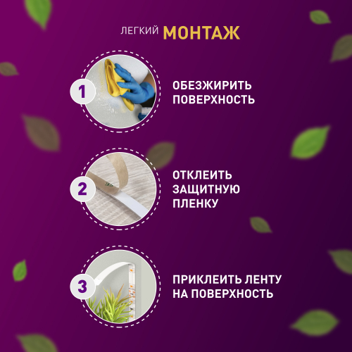 Фитолента ЭРА FITO-Strip Light-RB-2m отлично защищена от влаги и пыли — IP65. Не заслоняет естественный свет. Благодаря надёжному клейкому слою 3М её можно приклеить на стекло окна, любые металлические и пластиковые поверхности, обработанную древесину. Скотч ленты многоразовый — при условии монтажа на чистую поверхность хорошо отклеивается и не оставляет следов.