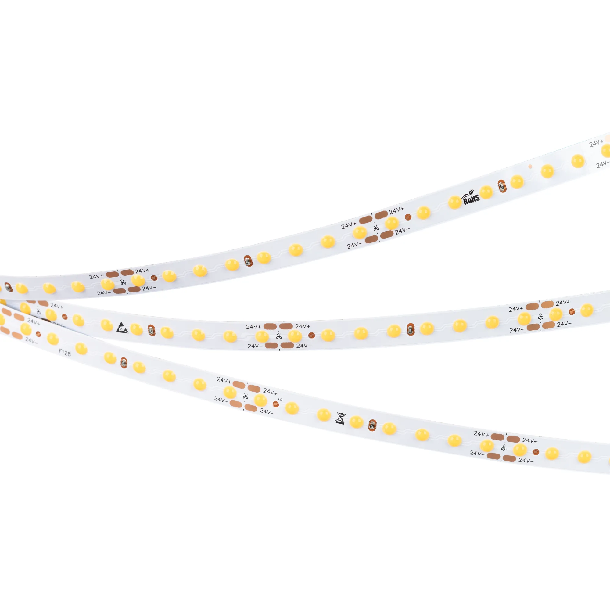 Светодиодная лента DOT с видимой световой точкой серии X128, шириной 8 мм, мощностью 11 Вт/м. Напряжение питания 24 В. Светодиоды CSP, 128 шт/м, теплого цвета свечения (3000K). Минимальный отрезок 62.5 мм (8 светодиодов). Декоративная лента DOT с видимыми точками светодиодов предназначена для подсветки интерьера, оформления рекламы, подсветки ниш, потолков.