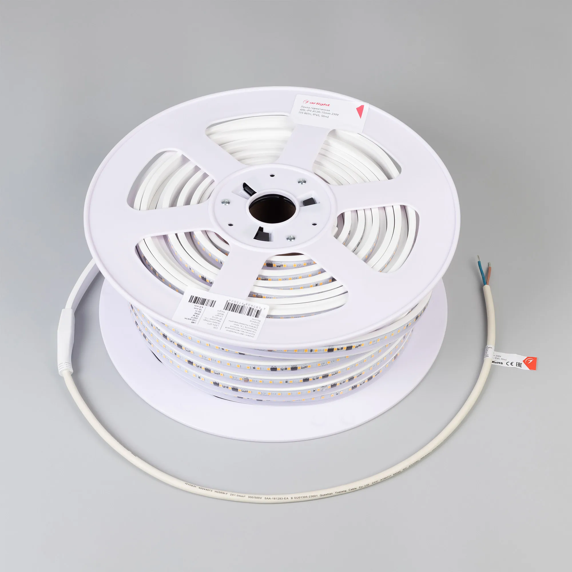 Светодиодная герметичная лента ARL серии A120 со степенью защиты IP65, защитная оболочка из ПВХ устойчива к УФ излучению, что позволяет использовать ее на улице. Высокий индекс цветопередачи CRI>85 обеспечивает точное восприятие цветовых оттенков. Лента подключается непосредственно к сети переменного тока 230 В и не требует использования источников питания. Наличие интегральных стабилизаторов тока позволяет подключать ленту длиной до 30 м, обеспечивая при этом равномерную яркость свечения по всей длине ленты. При подключении нескольких лент необходимо подавать питание на каждые 30 м отдельным кабелем, последовательное подключение лент более 30 м запрещается. Лента применяется для подсветки потолочных ниш, декоративной подсветки, создания контуров рекламных объектов, может использоваться в помещениях и на улице. На лентах установлены микросхемы с функцией снижения тока для защиты ленты от перегрева, обеспечивающие надежную работу в различных условиях. Диммирование в диапазоне 30%-90% осуществляется TRIAC диммерами с установкой минимального уровня яркости. Крепление с помощью скоб, аксессуары для монтажа и подключения поставляются отдельно. Поставка под заказ от 120 м.