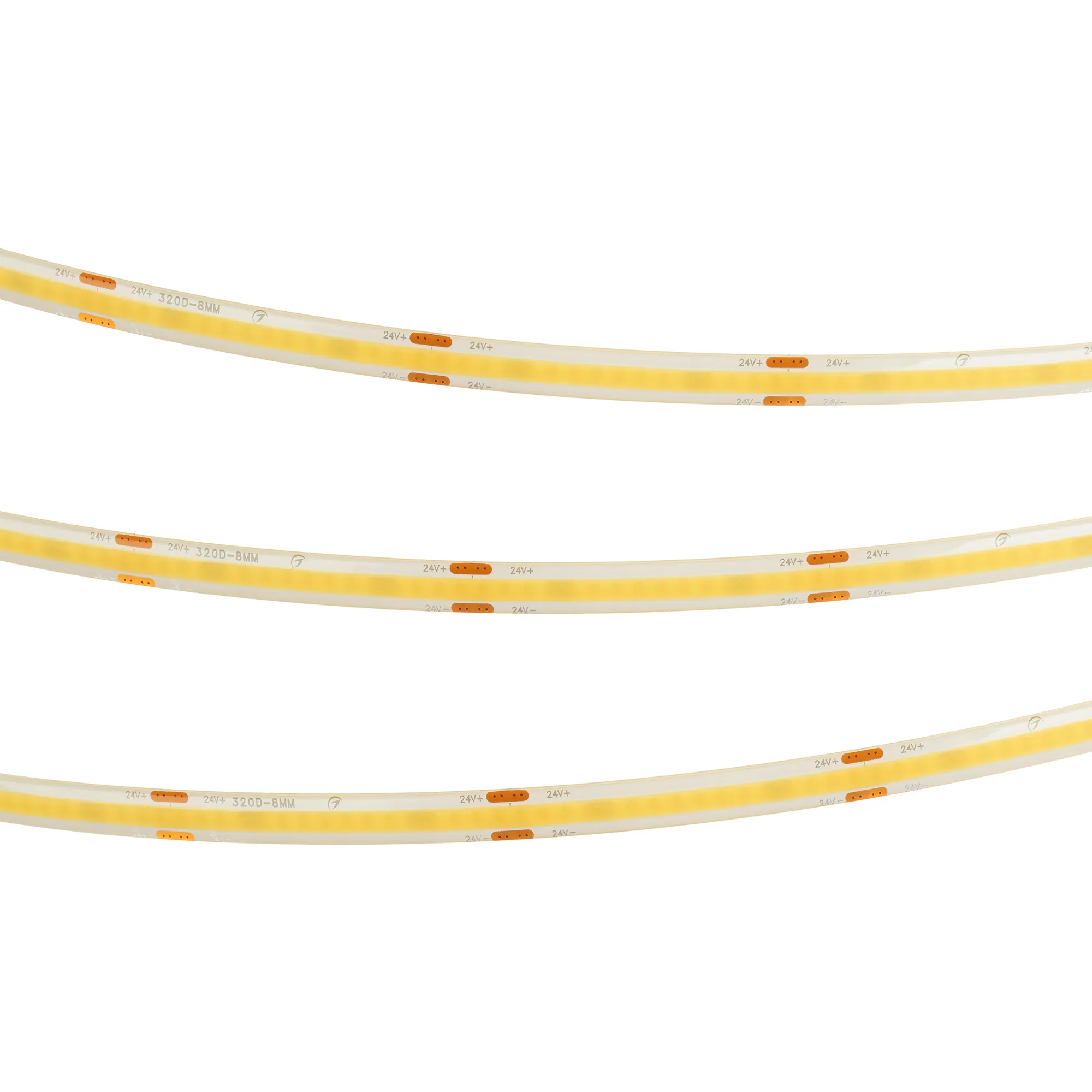 Светодиодная герметичная лента сплошного свечения COB серии X320, шириной 8 мм, мощностью 8 Вт/м, степень защиты IP65. Напряжение питания 24 В, светодиоды CSP, 320 шт/м, дневного цвета свечения (4000K). Высокий индекс цветопередачи CRI>90 обеспечивает точное восприятие цветов при освещении любых жилых и коммерческих помещений. Минимальный отрезок 50 мм. Эффект сплошной линии свечения создается без применения рассеивающих экранов. Применяется для декоративной подсветки любых жилых, коммерческих помещений, декоративной подсветки интерьеров, потолочных ниш, рабочих зон кухни, влажных зон, рекламных конструкций и витрин. Рекомендуется установка на профиль.