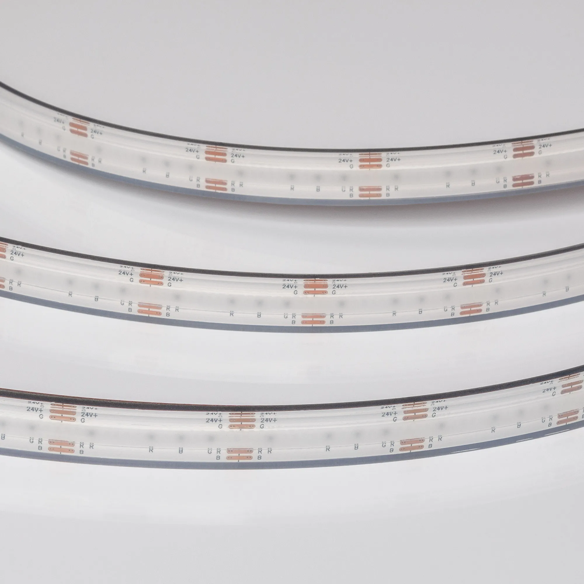 Светодиодная герметичная лента CSP сплошной засветки без видимых светодиодов серии X540 позволяет создавать равномерное и однородное свечение без точек, имеет повышенную световую эффективность и улучшенные теплорассеивающие свойства. Степень защиты IP68, полная силиконовая экструзия. Светодиоды CSP, 540 шт/м, цвет свечения RGB, трехканальная лента с четырьмя проводами для подключения. Управляется RGB-контроллером. Лента с широким спектром применения, подходит для организации подсветки в сауне, устойчива к применению в хлорированной водной среде, применяется для подсветки бассейнов (погружение на глубину до 2 м). Компоненты ленты устойчивы к широкому диапазону температур, за счет чего лента может применяться в условиях высоких и низких температур (TWP - Thermal Waterproof), диапазон рабочих температур окружающей среды -40..100°C. Для удобства монтажа лента имеет увеличенный кабель длиной 2 м. В комплекте силиконовые скобы 10 шт, силиконовая заглушка глухая 2 шт, силиконовая заглушка под провод 2 шт.
