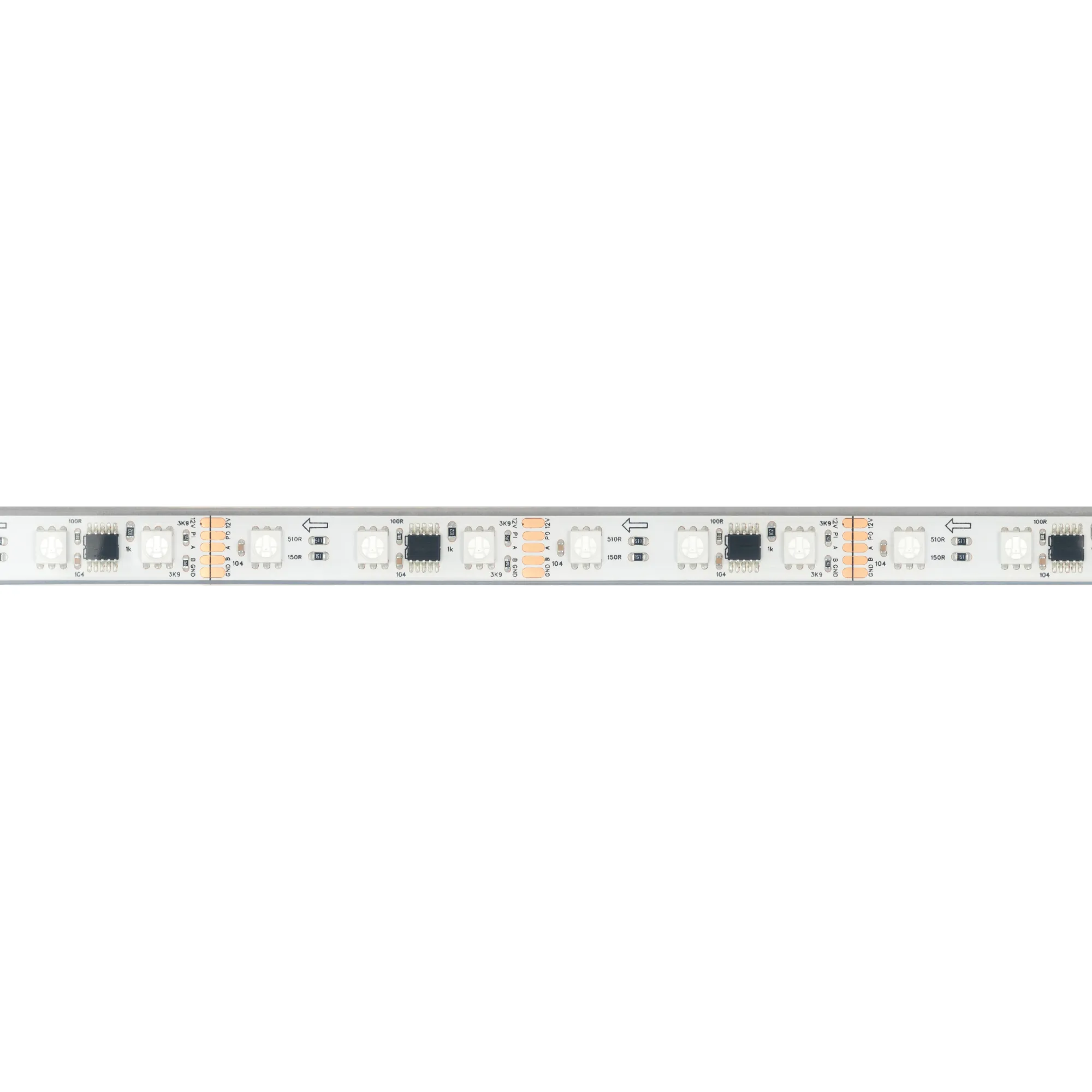 Герметичная лента DMX с микросхемой GS8516 (GS8526), IP68. Управление через внешний контроллер (совместимый c микросхемами GS8515, GS8513, UCS512, TM512, SM17512) по стандартному протоколу DMX512. Используется для воспроизведения многоцветных световых эффектов различной сложности: от простейших эффектов до воспроизведения динамических изображений на мультимедийных экранах. Применяется для создания рекламных вывесок, оформление витрин, помещений для дискотек, ресторанов, театрализованных шоу, изготовление медиафасадов. В комплекте: 10 силиконовых клипс.