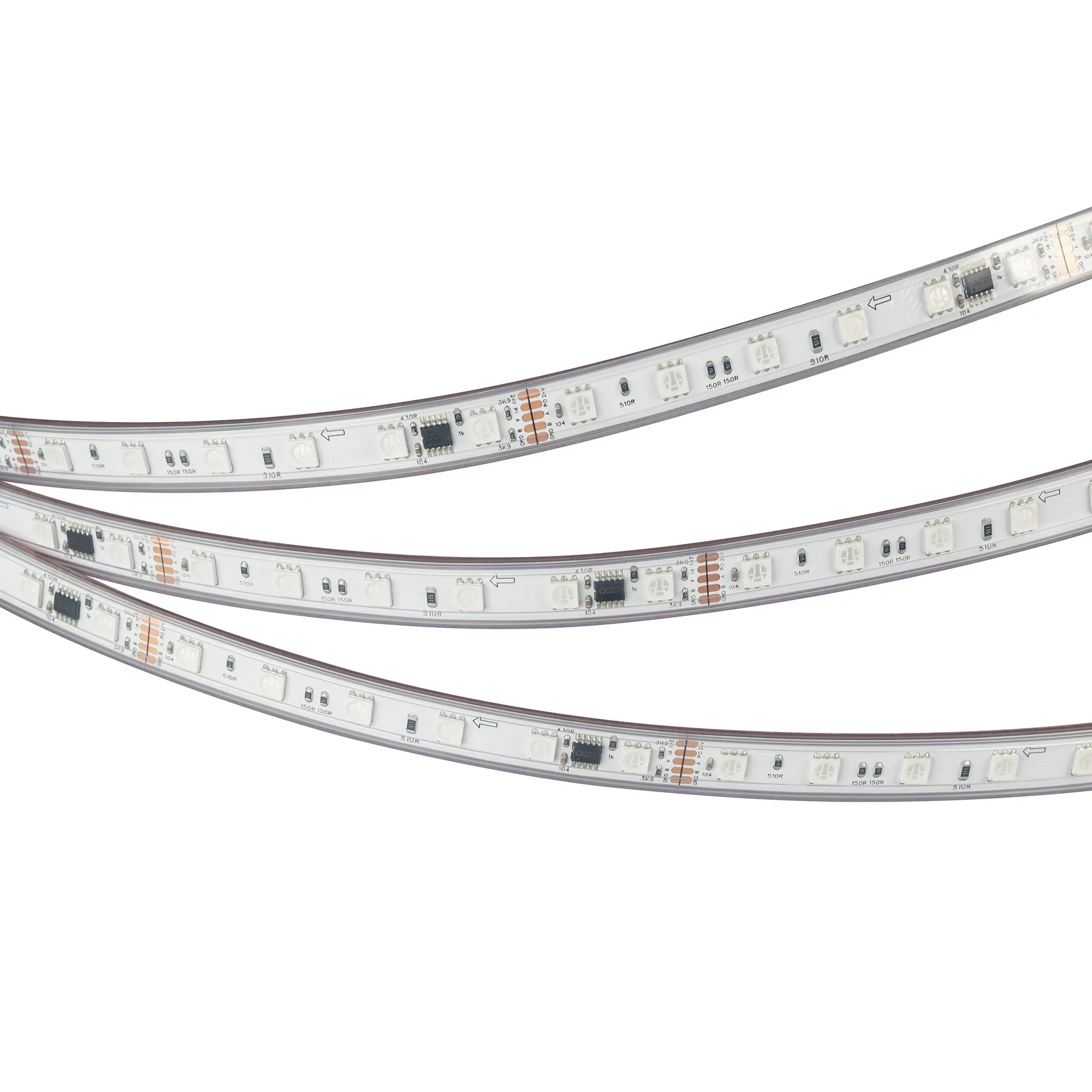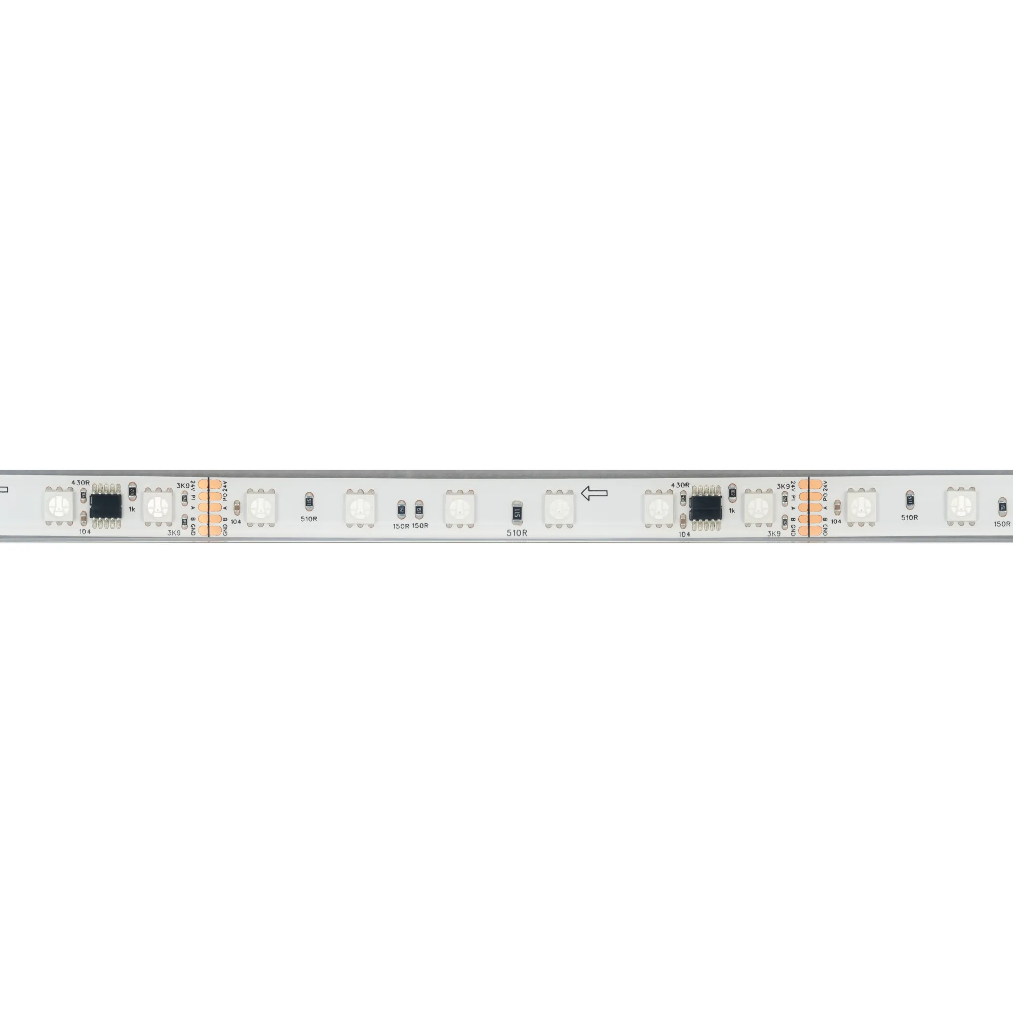 Герметичная лента DMX с микросхемой GS8526, IP68. Управление через внешний контроллер (совместимый c микросхемами GS8515, GS8513, UCS512, TM512, SM17512) по стандартному протоколу DMX512. Используется для воспроизведения многоцветных световых эффектов различной сложности: от простейших эффектов до воспроизведения динамических изображений на мультимедийных экранах. Применяется для создания рекламных вывесок, оформление витрин, помещений для дискотек, ресторанов, театрализованных шоу, изготовление медиафасадов. В комплекте: 10 силиконовых клипс.
