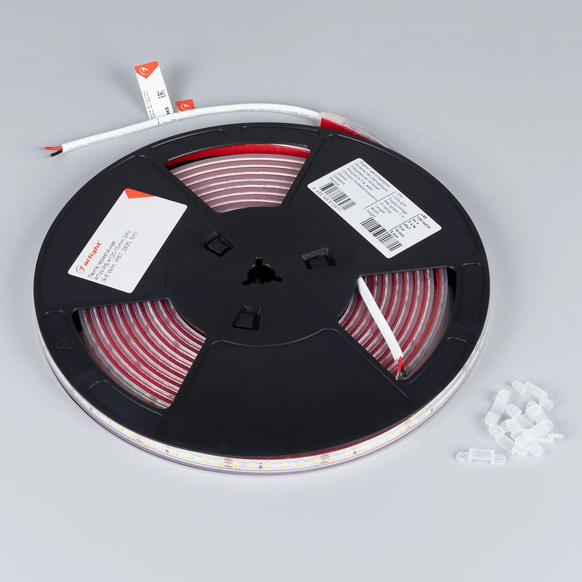 Светодиодная герметичная лента RTW серии A120 шириной 10 мм, мощностью 9.6 Вт/м, степень защиты IP67, силиконовая экструзия. Напряжение питания 24 В. Светодиоды SMD 2835, 120 шт/м, теплого цвета свечения (3000K). Минимальный отрезок 50 мм (6 светодиодов). Индекс цветопередачи CRI>85. Лента для использования в помещениях и на улице. Применяется для декоративной подсветки интерьеров, потолочных ниш, рабочих зон кухни, влажных зон, наружной рекламы и витрин. В комплекте силиконовые клипсы для установки - 15 шт.