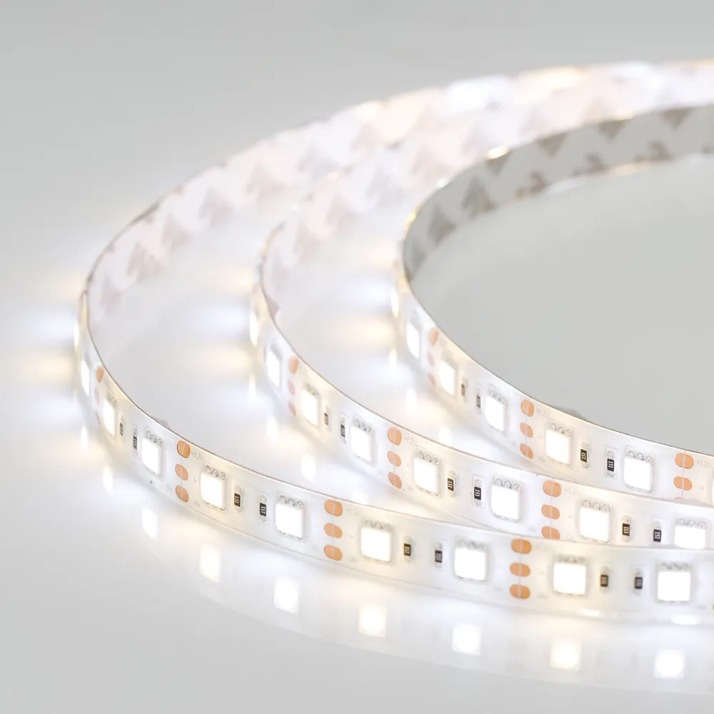 Светодиодная герметичная лента RTW серии B60, IP65 шириной 12 мм, мощностью 14.4 Вт/м, с изменяемым цветом белого свечения в широком диапазоне (MIX) от теплого (3000K) до белого (6000K). Напряжение питания 12 В. Светодиоды SMD 5060, 60 шт/м. Индекс цветопередачи CRI>85. Минимальный отрезок 33.33 мм (2 светодиода). Двухканальная лента с тремя проводами для подключения, управляется MIX-контроллером. Применяется для создания биодинамического освещения, декоративной подсветки элементов интерьера, ниш, рекламных конструкций, витрин, рабочих зон, зон отдыха, мебели, влажных помещений.