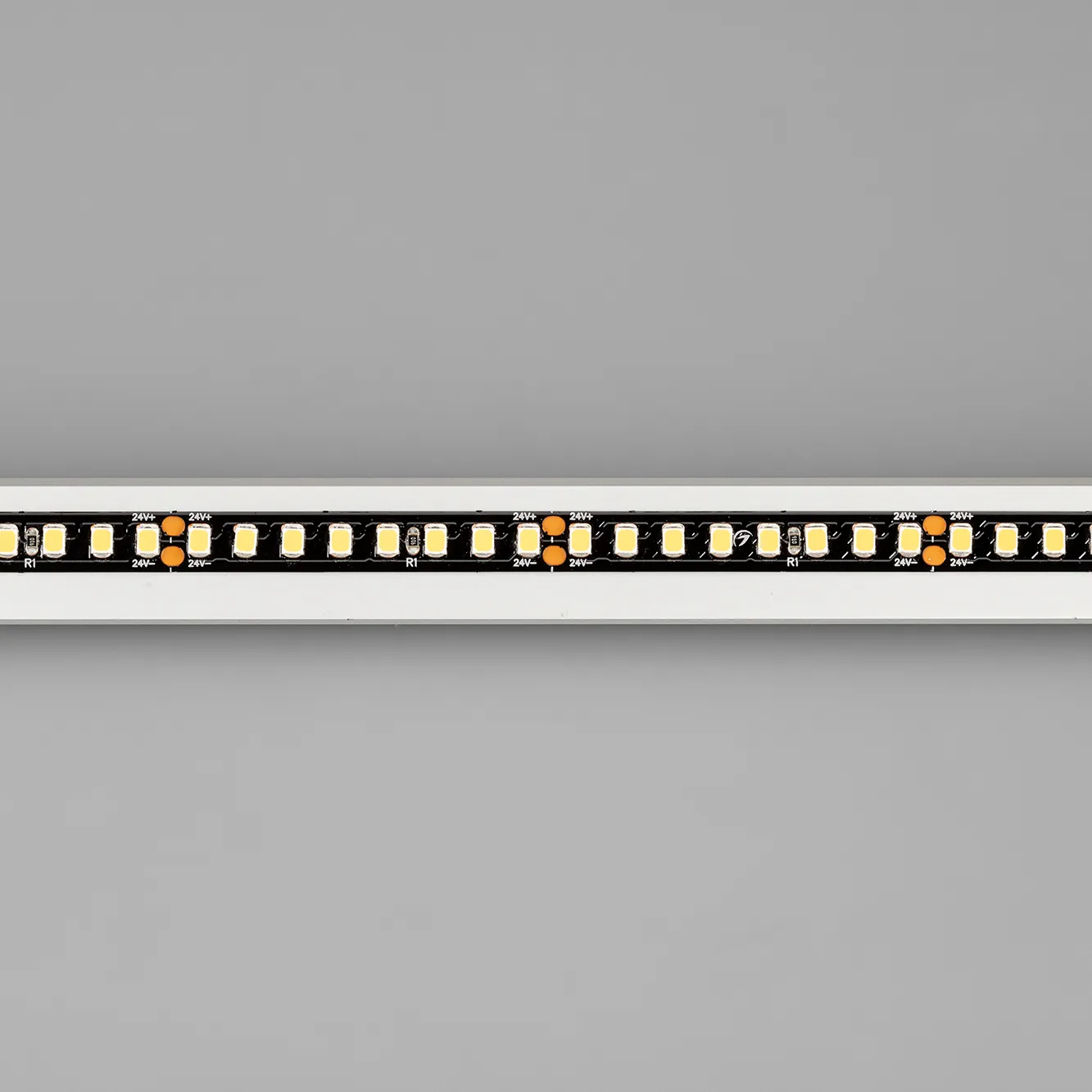 Высокоэффективная светодиодная лента RT серии A160 на черной плате. Светодиоды SMD 2835, 160 шт/м, дневного цвета свечения (4000K). Напряжение питания 24 В, мощность 12 Вт/м, ширина 8 мм. Применяется для создания декоративных ярких линий интерьеров, потолочных ниш. Индекс цветопередачи CRI>85, высокая световая эффективность (150 лм/Вт) позволяет применять ленту для энергоэффективного освещения любых жилых и коммерческих помещений. Применяется для создания светильников на основе алюминиевого профиля. Для обеспечения теплоотвода обязательна установка на алюминиевый профиль.