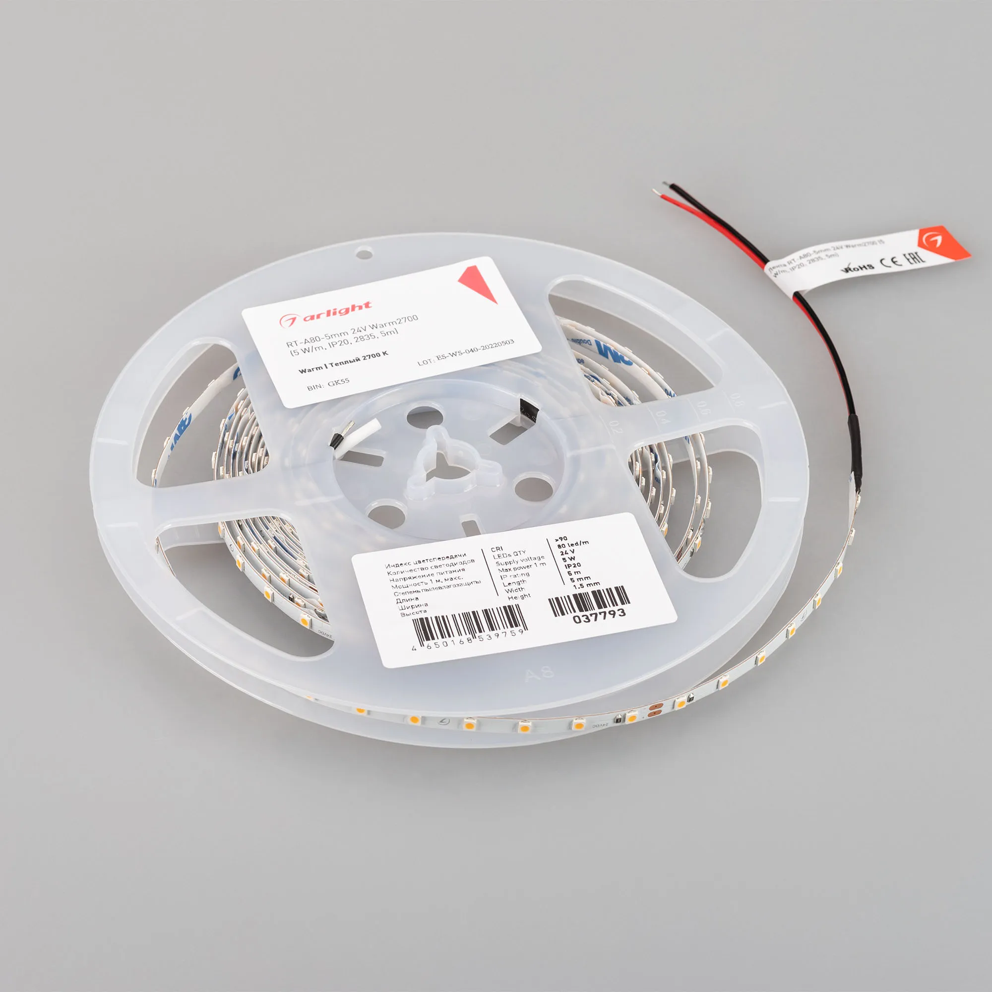 Узкая светодиодная лента RT серии A80 шириной 5 мм, мощностью 5 Вт/м. Светодиоды SMD 2835, 80 шт/м, теплого цвета свечения (2700K). Высокий индекс цветопередачи CRI>90 обеспечивает точную передачу цветов при освещении любых жилых и коммерческих помещений. Напряжение питания 24 В. Подходит для установки в тонкий паз 5 мм. Применяется для подсветки интерьеров, витрин, торцевой подсветки стеклянных полок и элементов мебели, подсветки рекламы, витражей. Минимальный отрезок 100 мм (8 светодиодов).