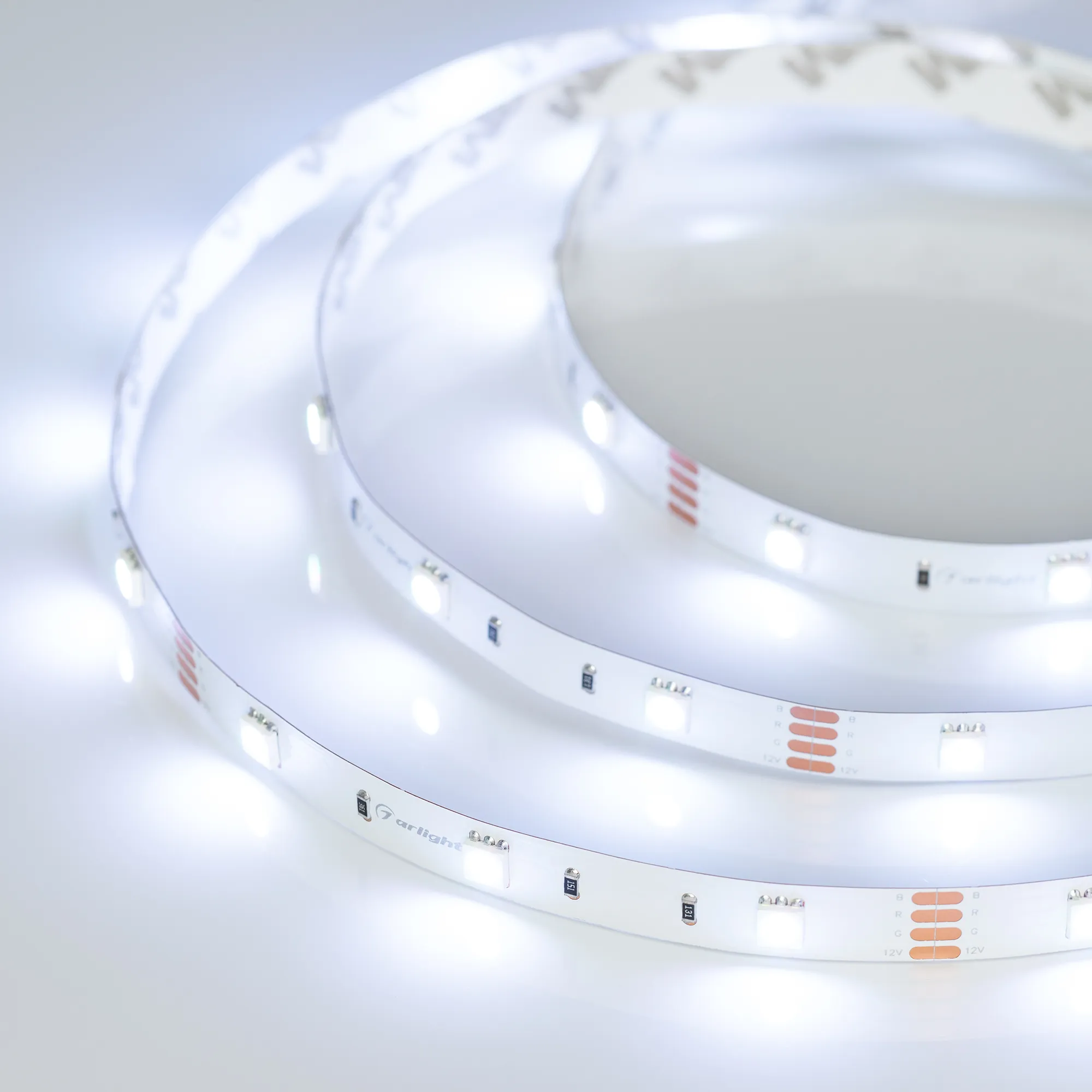 Мультицветная светодиодная лента RT серии B30 шириной 10 мм, мощностью 7.2 Вт/м. цвет свечения RGB. Напряжение питания 12 В. Светодиоды SMD 5060, 30 шт/м. Минимальный отрезок 100 мм (3 светодиода). Трехканальная лента с 4 проводами для подключения, управляется RGB-контроллером. Применяется для создания яркой цветной декоративной подсветки элементов интерьера, ниш, рекламных конструкций, витрин, зон отдыха. Широкий шаг между светодиодами создает эффект видимых точек.